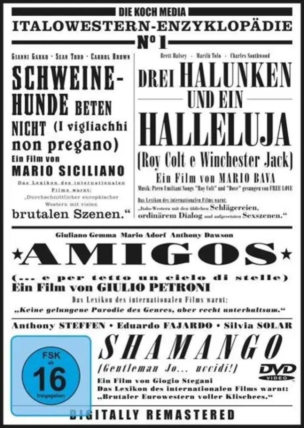 In "Drei Halunken und ein Halleluja" von Kultregisseur Mario Bava jagen drei rivalisierende Banden einem Goldschatz hinterher. Der selten gezeigte "Schweinehunde beten nicht" zeigt Sartana-Star Gianni Garko als ehemaligen Konföderations-Soldaten, der nach dem Mord an seiner Familie grausame Rache schwört. Und in "Shamango" sehen wir Anthony Steffen in einer seiner besten Filme als Gentleman, der in einer Grenzstadt eine mexikanische Gangsterbande aufmischt.