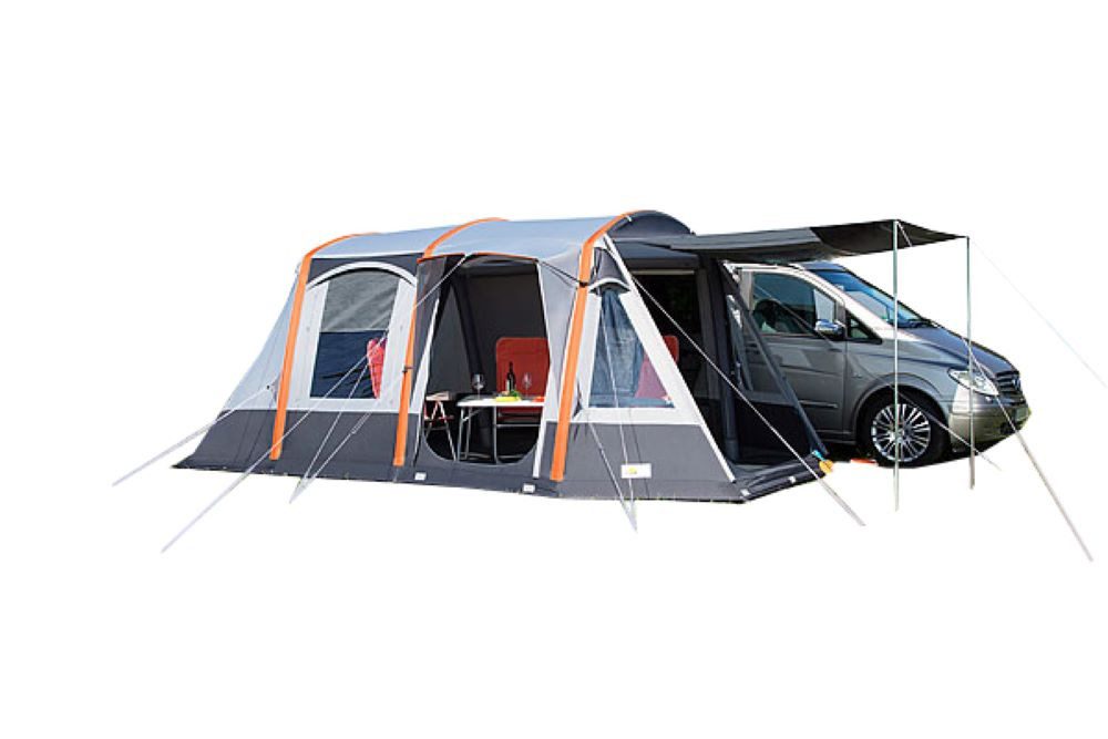 Das Buszelt Pegasus Air ist ein Raumwunder, denn es wird parallel zum Fahrzeug aufgebaut und garantiert dadurch eine optimale Flächennutzung. Dank seiner Ausstattung ist es besonders vielseitig und flexibel gestaltbar, bis zu vier Schlafplätze sind möglich. Das Air in System sorgt für einen Aufbau im Handumdrehen.