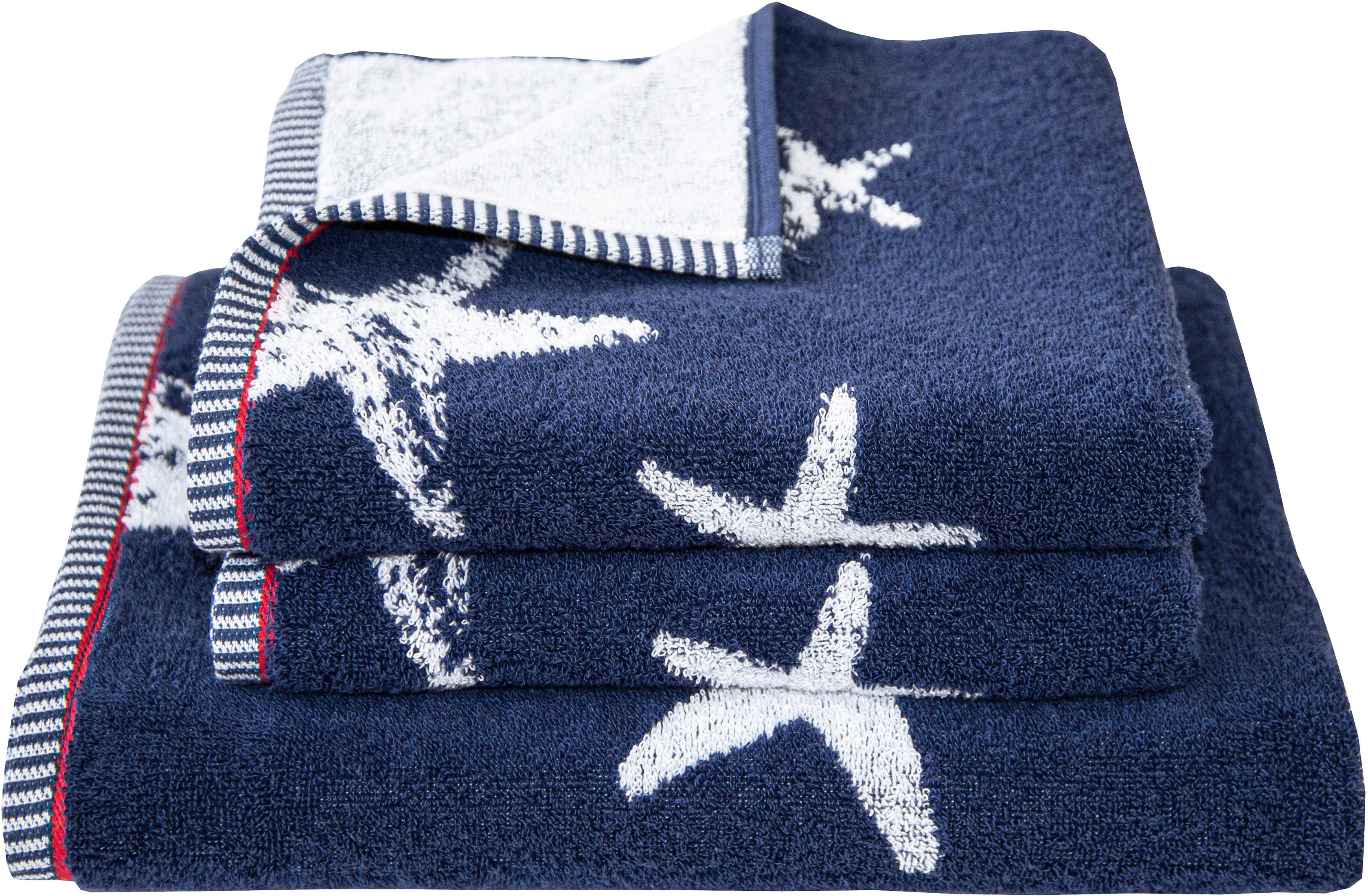 Entdecken Sie die maritime Frottierserie "Maritim", die mit ihren verschiedenen Motiven eine zauberhafte Kombinationsvielfalt bietet. Die Produkte dieser Serie verleihen Ihrem Badezimmer ein modisches Flair dank ihres besonders gestalteten Saumabschlusses. Die "Maritim" Serie besticht durch ihre angenehm weiche Qualität, die eine sehr gute Saugfähigkeit bietet. Das Flächengewicht der Tücher beträgt ca. 480 g/m², was sie zu einer langlebigen und strapazierfähigen Wahl macht. Wählen Sie aus fünf zauberhaften Designs: "Voyage", "Nautic", "Sea Stripe", "Starfish" und "Block Stripe". Jedes Design erzählt seine eigene maritime Geschichte und bringt frische Meeresbrisen in Ihr Zuhause. Ob Sie sich für das lebendige "Voyage" entscheiden, das klassische "Nautic" bevorzugen, die zeitlose Eleganz von "Sea Stripe" schätzen, die verspielte "Starfish" mögen oder das trendige "Block Stripe" mögen, bei uns finden Sie das perfekte Design, das Ihre Persönlichkeit widerspiegelt. Die "Maritim" Serie bietet Ihnen auch eine breite Farbpalette, um Ihre persönliche Note einzubringen. Wählen Sie aus drei ansprechenden Farben, die perfekt zu Ihrem Badezimmerambiente passen. Für unterschiedliche Bedürfnisse stehen Ihnen zwei Größen zur Verfügung. Die Handtücher mit den Maßen 50x100 cm eignen sich ideal für den täglichen Gebrauch und das schnelle Abtrocknen. Die Duschtücher in der Размер 70x140 cm bieten Ihnen ein luxuriöses Gefühl und umhüllen Sie mit kuscheliger Geborgenheit nach einer erfrischenden Dusche. Verwöhnen Sie sich und Ihre Lieben mit der Frottierserie "Maritim" und erleben Sie die perfekte Kombination aus stilvollem Design und hervorragender Funktionalität. Bringen Sie die Magie des Meeres in Ihr Zuhause und genießen Sie die entspannenden Momente nach einem erfrischenden Bad oder einer erquickenden Dusche. Tauchen Sie ein in die Welt von "Maritim" und entdecken Sie eine neue Dimension der Behaglichkeit.