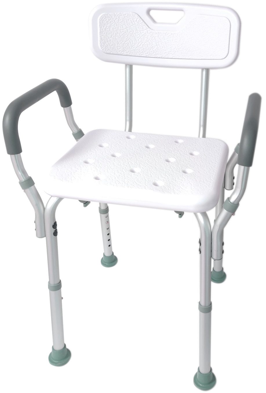 Sicherheit: Rutschfeste Füße, abnehmbare Armlehnen und Drainagelöcher