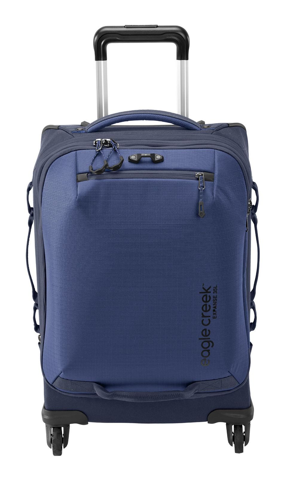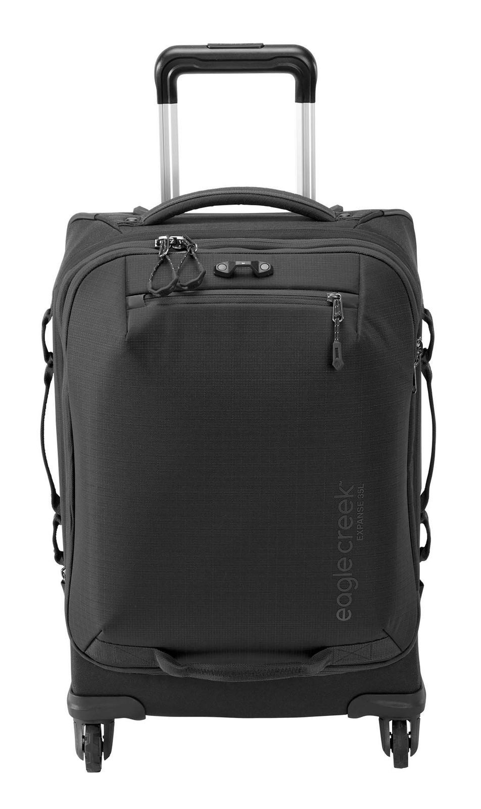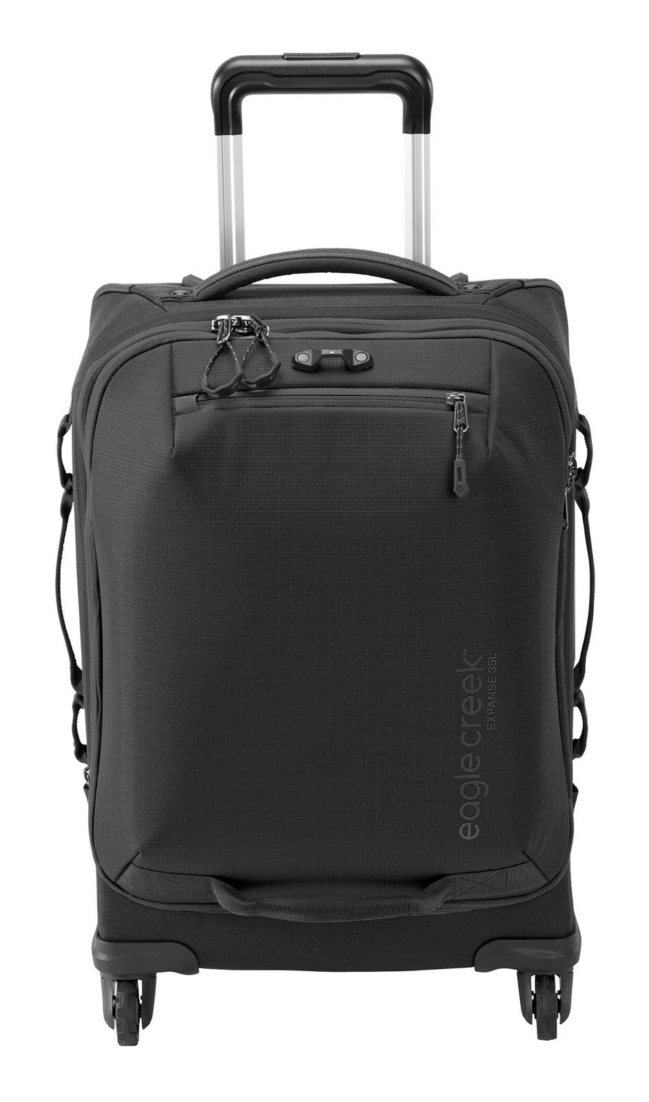 Robust und praktisch überzeugt dieser eagle creek Reisebegleiter. Schützend hält er all Ihre Utensilien im Inneren fest beisammen. Die qualitative Verarbeitung und das recycelte Material machen diesen Trolley zu einem wahren Helden. Auf leisen Rollen kann er Ihrem Tempo mithalten. Auf der Vorderseite befindet sich eine Befestigung, an dem die Zipper mit einem separat erhältlichen Schloss fixiert werden können, um den Inhalt des Trolleys vor unerlaubtem Zugriff zu schützen. Der eagle creek Expanse International 4-Wheel Carry-On 35 L Trolley hat uns im Ganzen überzeugt und wir wollen ihn auf der nächsten Reise sicherlich nicht missen!