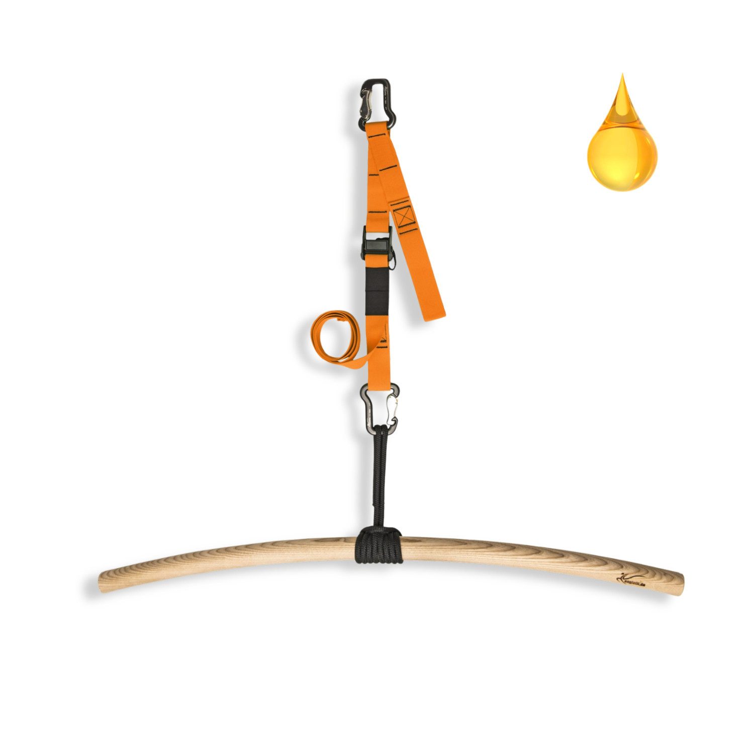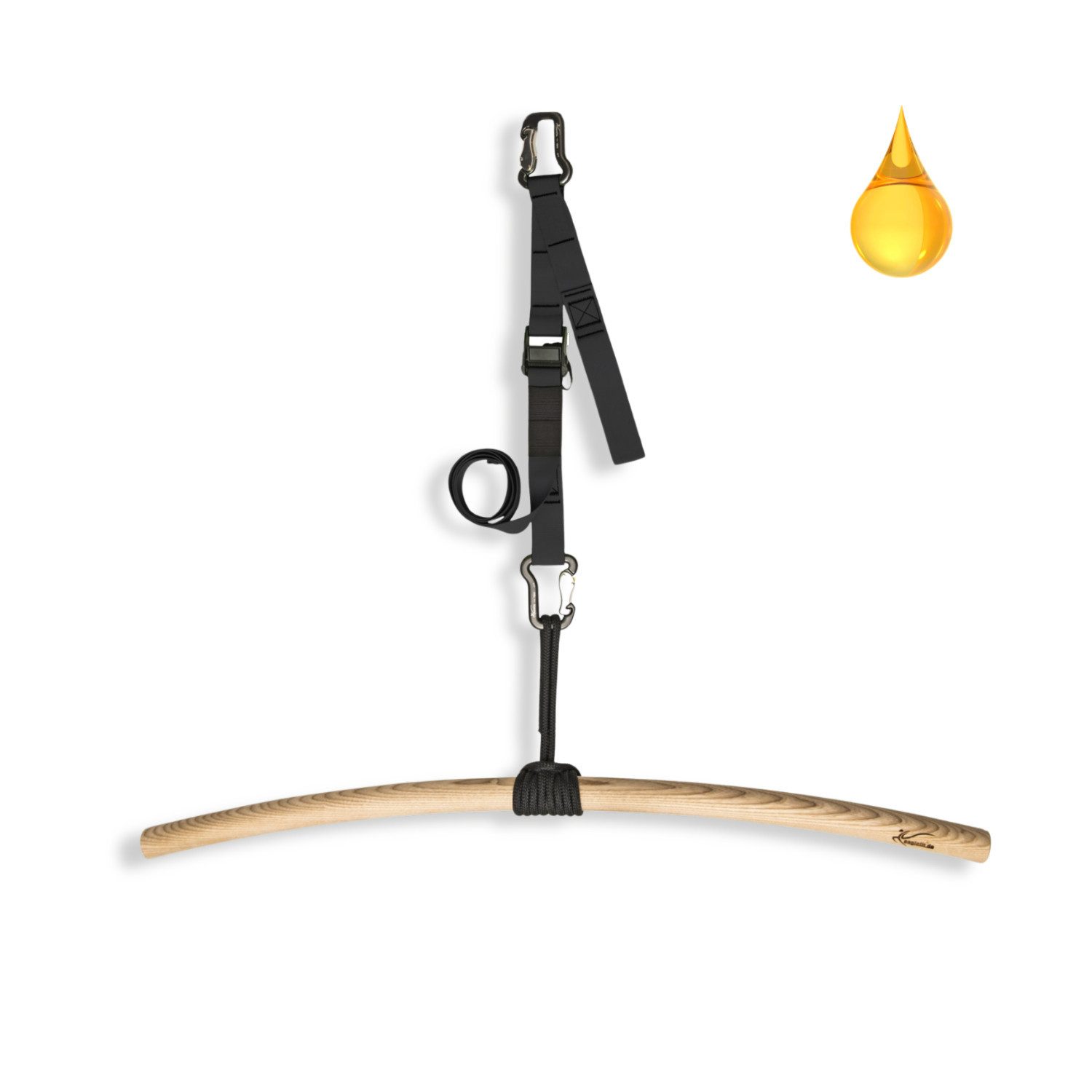 Diese Esche - Klimmzugstange wird geölt geliefert. Durch die Befestigung an einem zentralen Punkt, muss mit beiden Armen exakt die gleiche Kraft aufgebracht werden – perfektes Balance Training und idealer Ausgleich bei einseitigen Sportarten wie Tennis, Golf, etc. Die Breite der Stange ermöglicht ein sehr variables Training sowohl im engen als auch im weiten Griff. Durch diese gebogene Ausführung ist jede Griffposition optimal zur Körpermitte ausgerichtet und schont die Handgelenke.