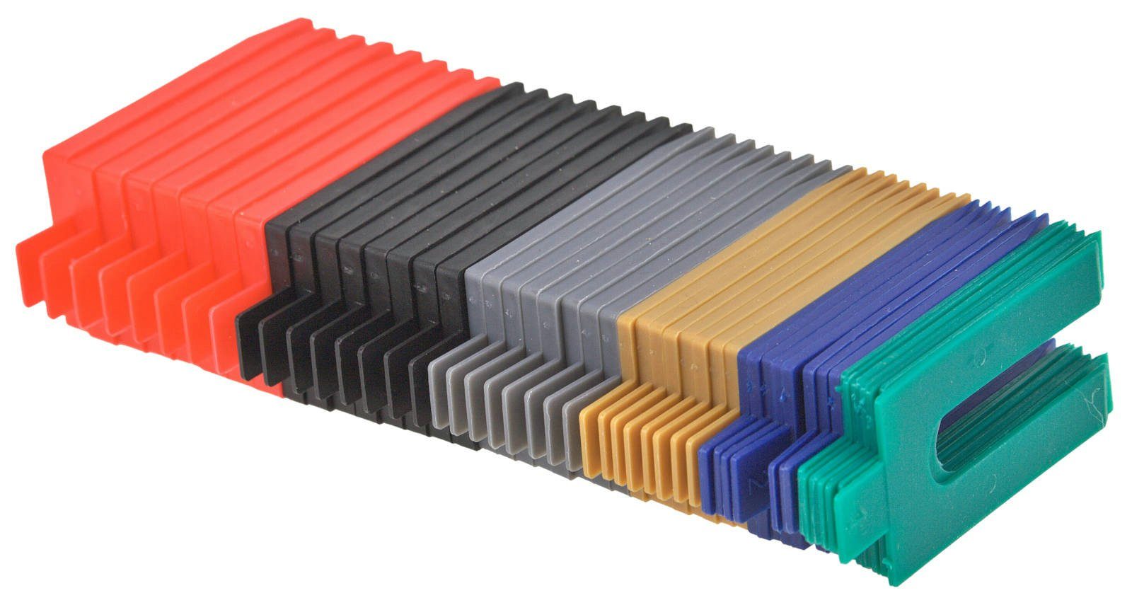Lieferumfang | 48 teiliges Kunststoff Unterlegkeile Set 1-6mm |