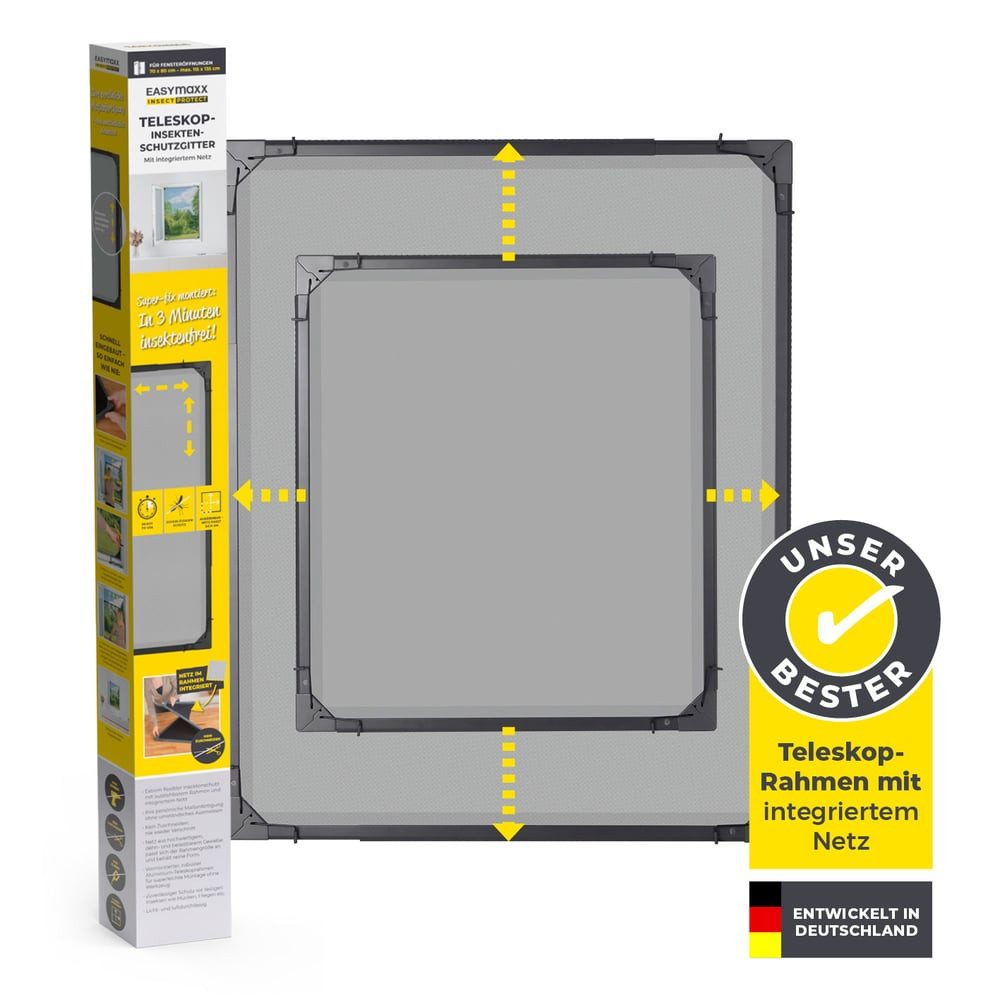 Dann schütze jetzt deine Familie minutenschnell gegen Mücken, Wespen, Spinnen & Co.: Das EASYmaxx Insect Protect Teleskop-Insektenschutzgitter mit vormontierten Rahmen und integriertem Netz ist so schnell angebracht wie kein anderer Insektenschutz und bietet höchste Flexibilität ohne Planungsaufwand.