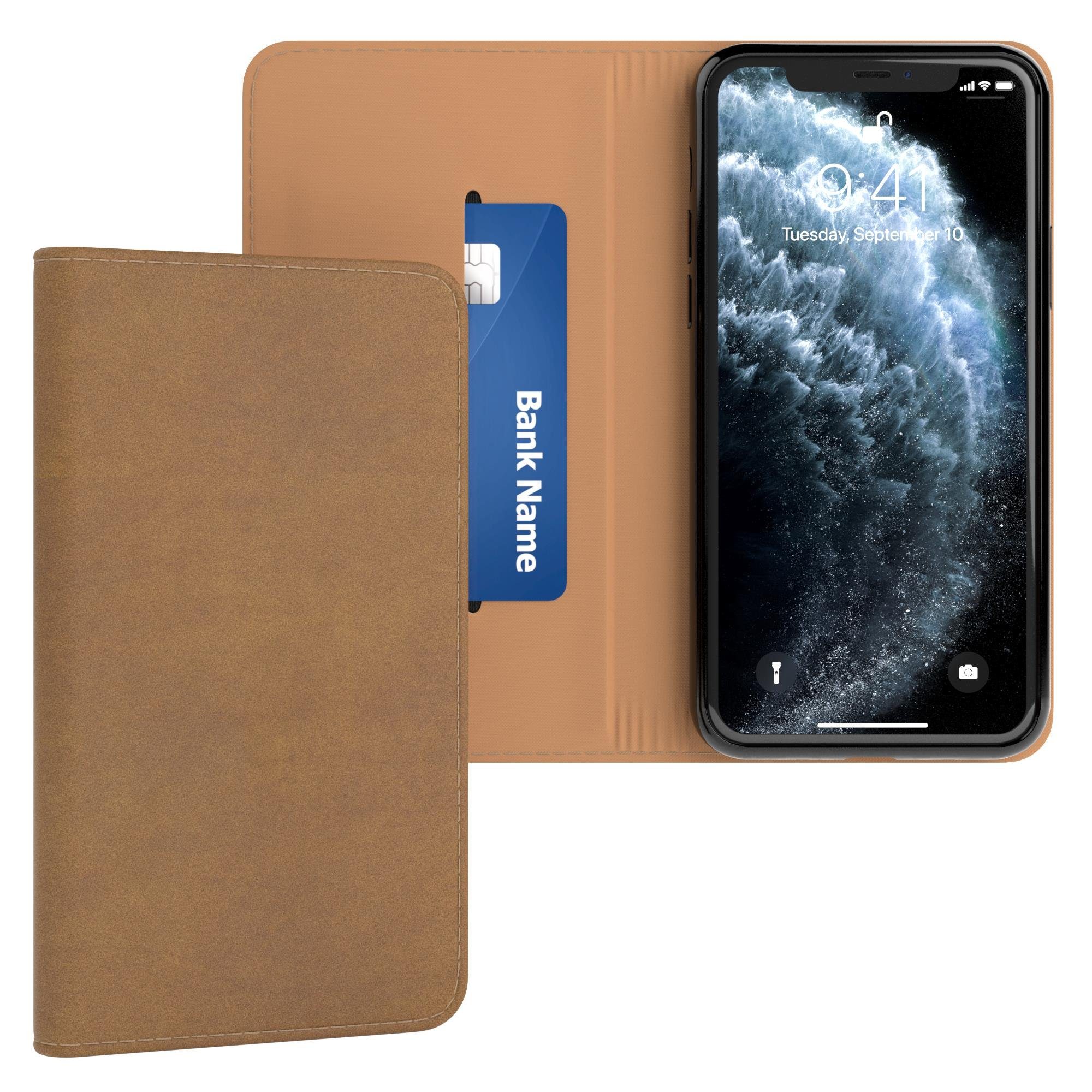 Besondere Merkmale | Handy Klappcase mit Kartenfächer Kunstleder Handytasche Etui Braun |