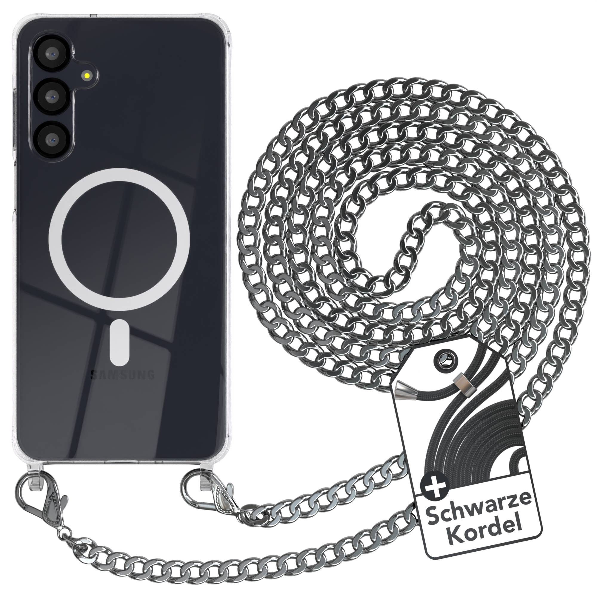 Lieferumfang | 1x MagSafe Silikon Hülle + gewählte Metallkette + Stoffkordel Schwarz, 1x Mikrofasertuch |