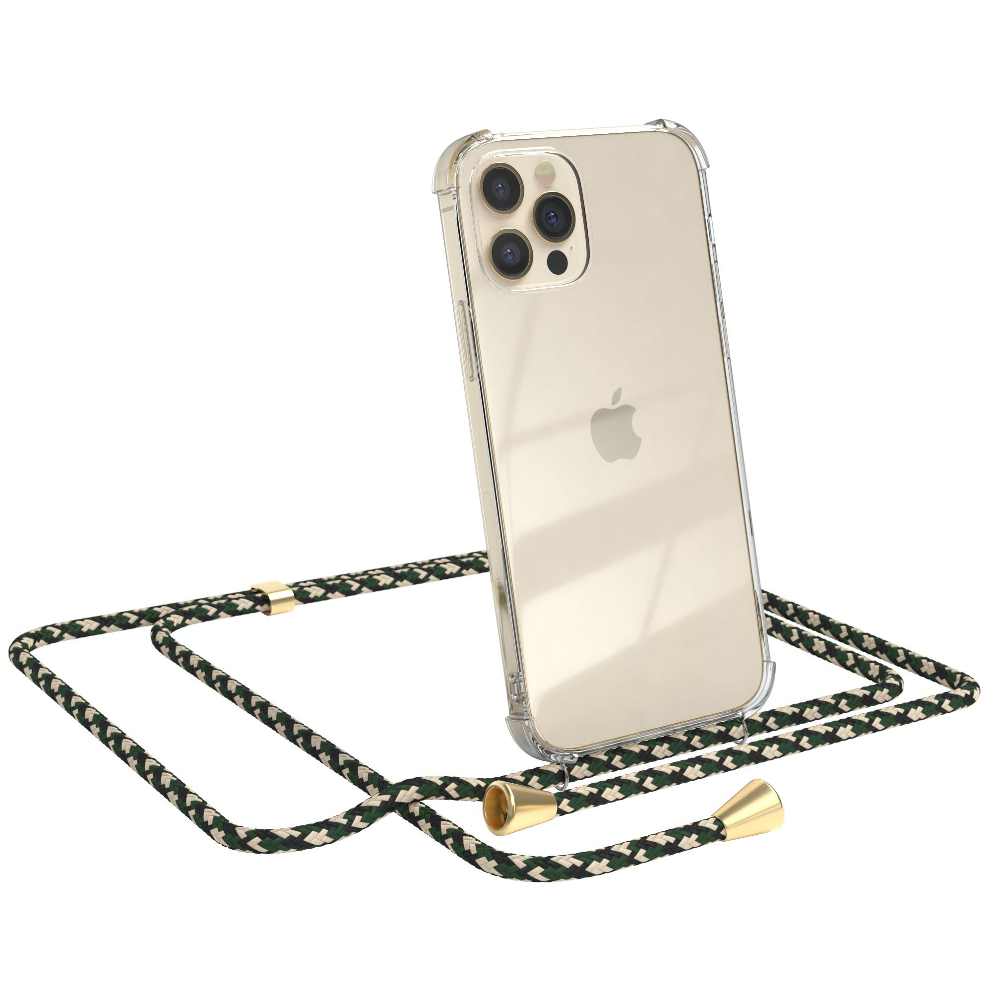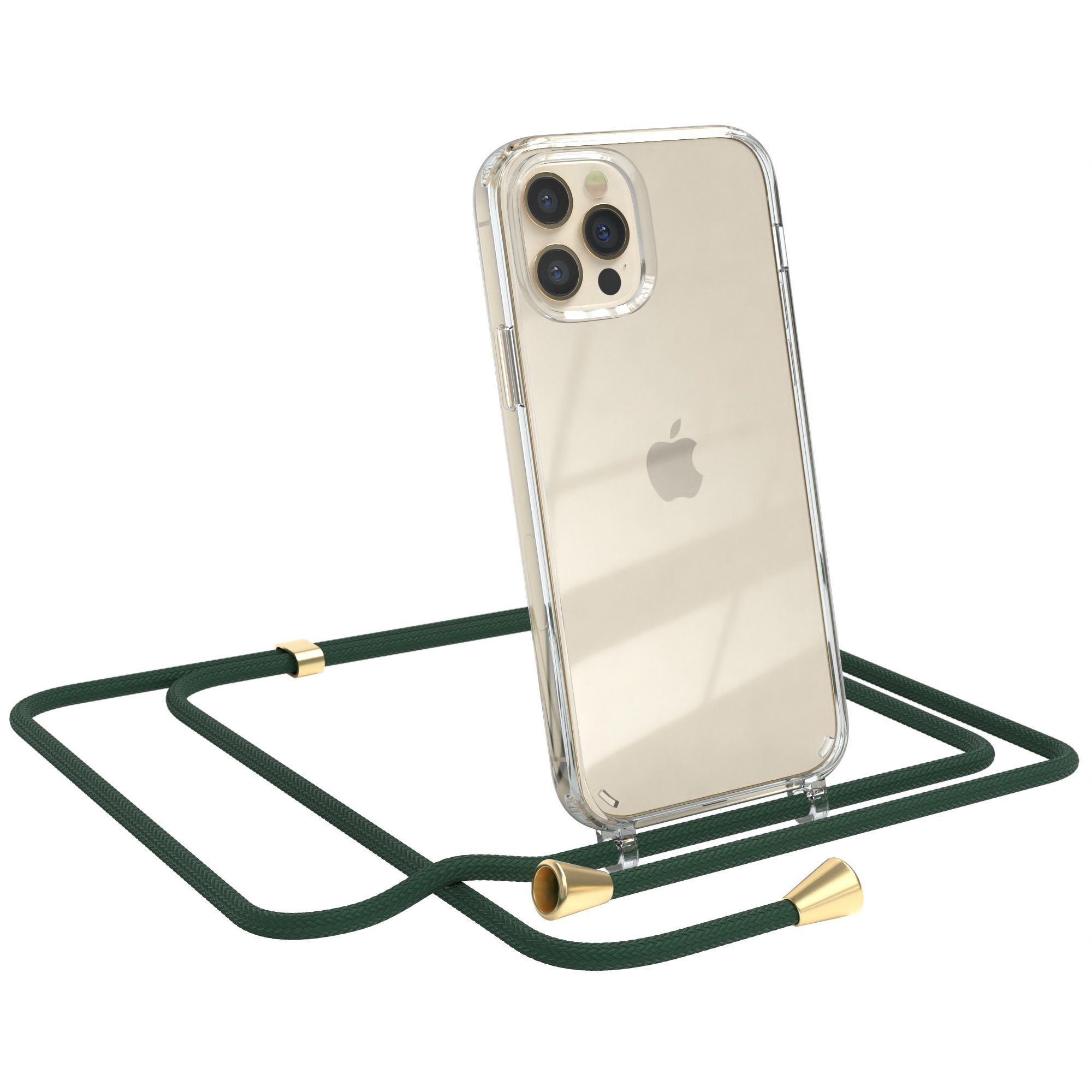 Besondere Merkmale | Kettenhülle zum Umhängen Tasche Handykordel Slimcover Grün Clips Gold |