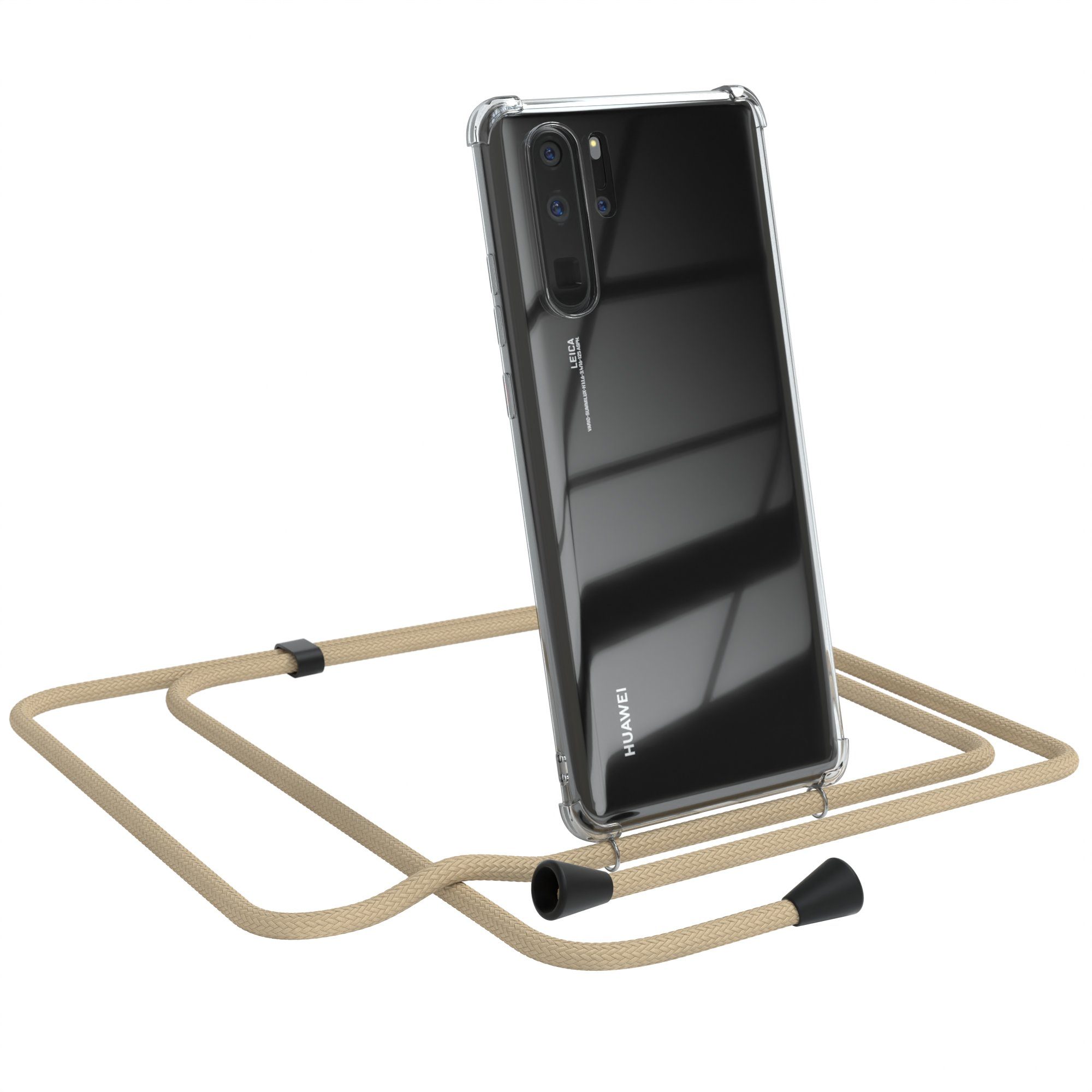 EAZY CASE Handykette Kette Clips Schwarz für Huawei P30 Pro 6,47 Zoll, Slimcover mit Umhängeband Case Handytasche Clear Backcover Schwarz