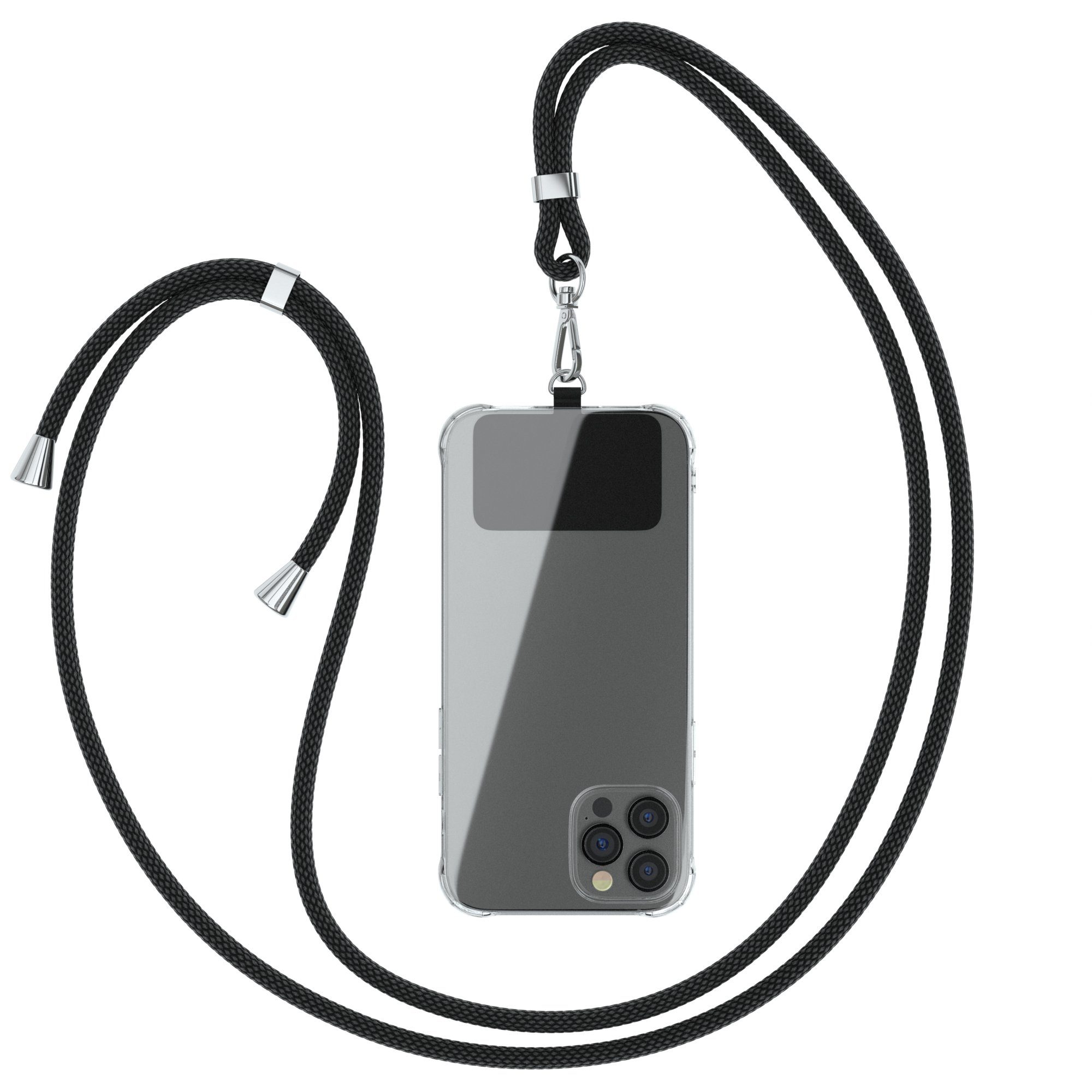 Besondere Merkmale | Kette zum Umhängen Pad mit Kordel Uni Smartphonekette Schwarz Black |