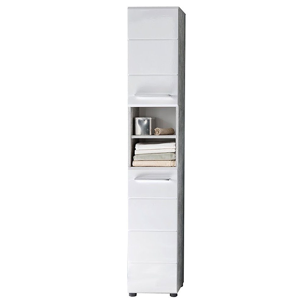 Lieferumfang | Hochschrank NanoBad Beton Stone Melamin Weiß Hochglanz B/H/T ca.: 32/182/28 cm |