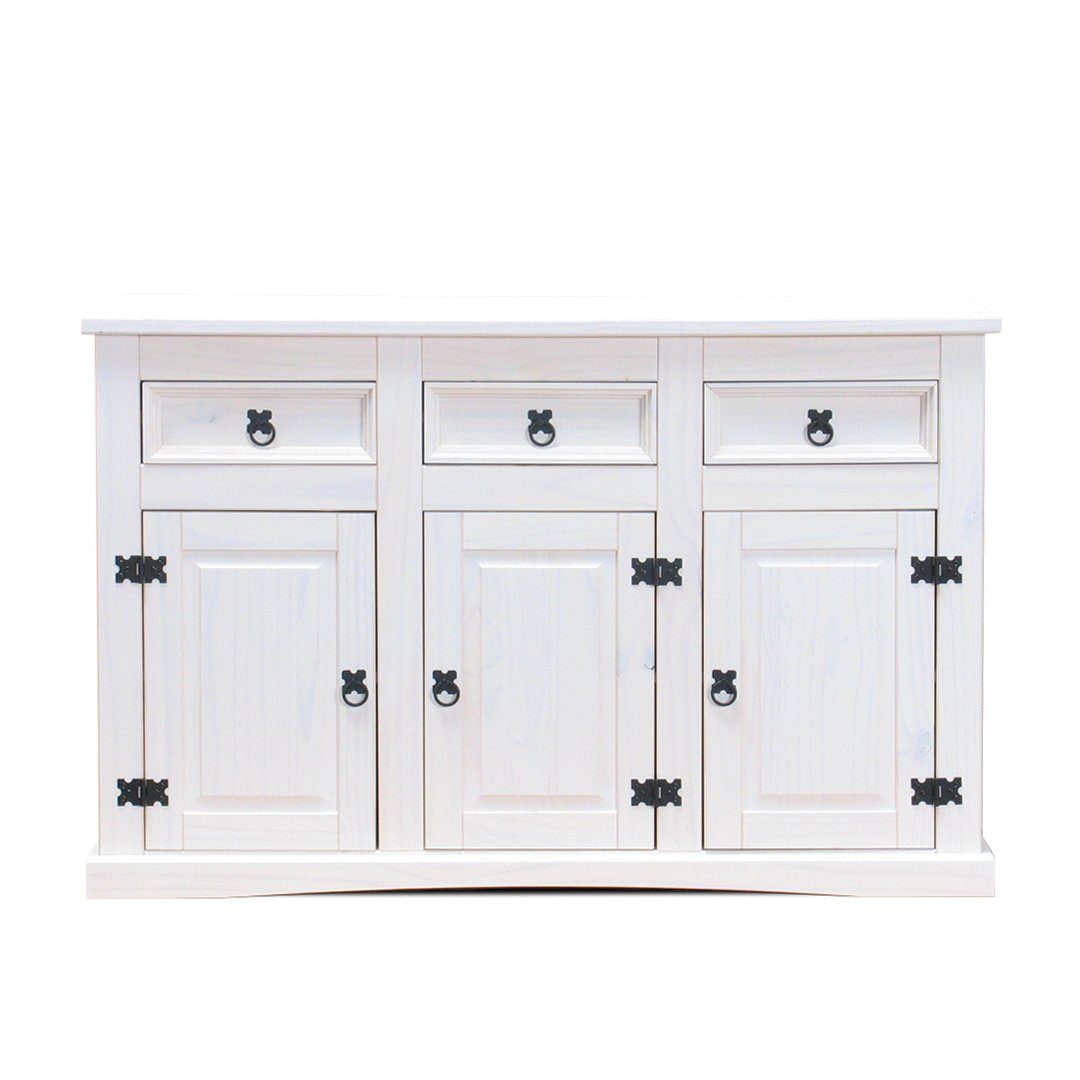 Material | Kiefer massiv, gewachst, Metallgriffe im antik Look. |