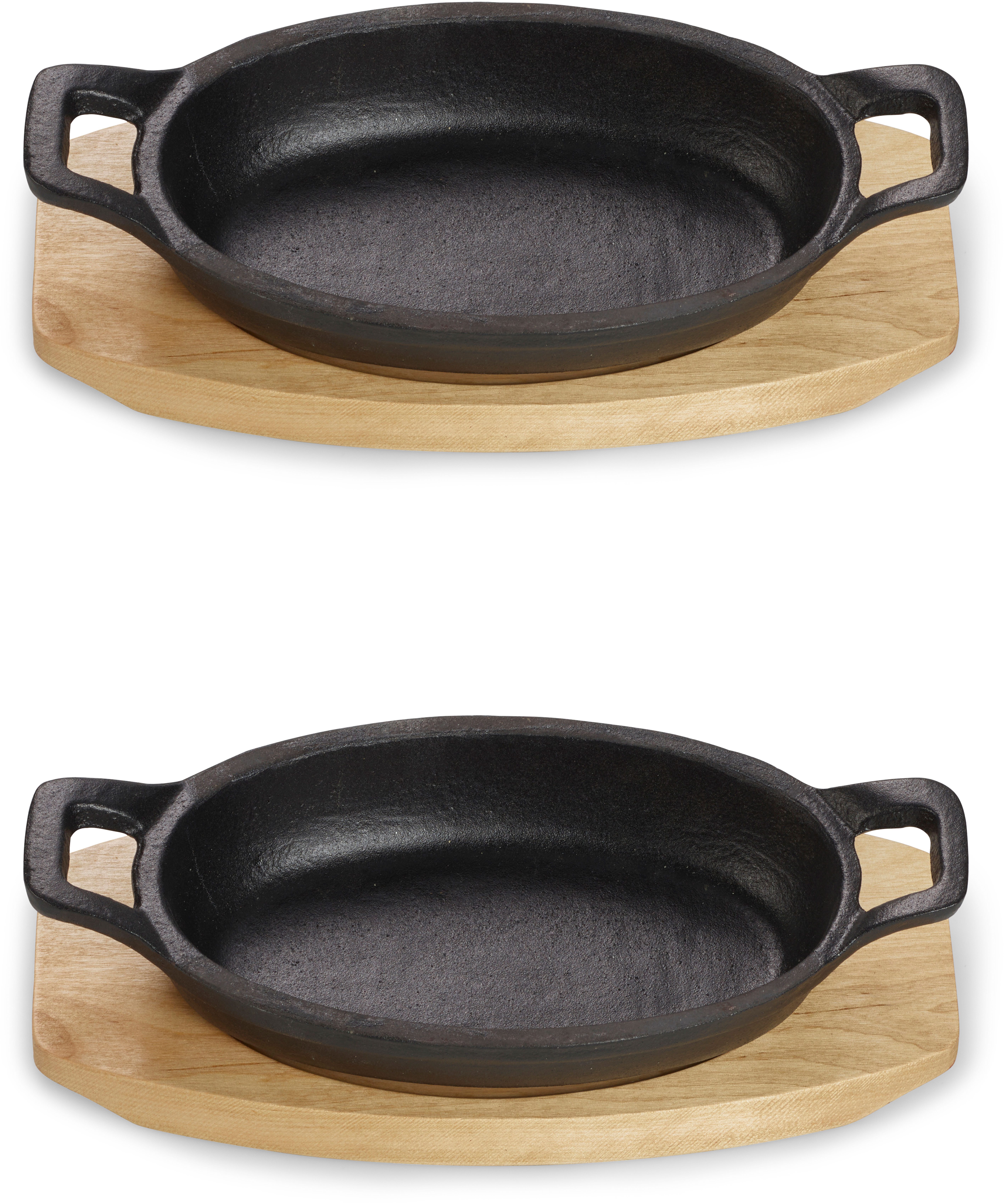 Warnhinweise | Holzbrett nicht mit heißem Pfännchen unbeaufsichtigt lassen – Brandgefahr. Nicht für die Mikrowelle geeignet. Nicht leer erhitzen – Gefahr von Überhitzung oder Rissbildung. Nicht spülmaschinengeeignet – nur handreinigen, ohne Spülmittel. Pfännchen wird sehr heiß – nur mit Hitzeschutz anfassen! |