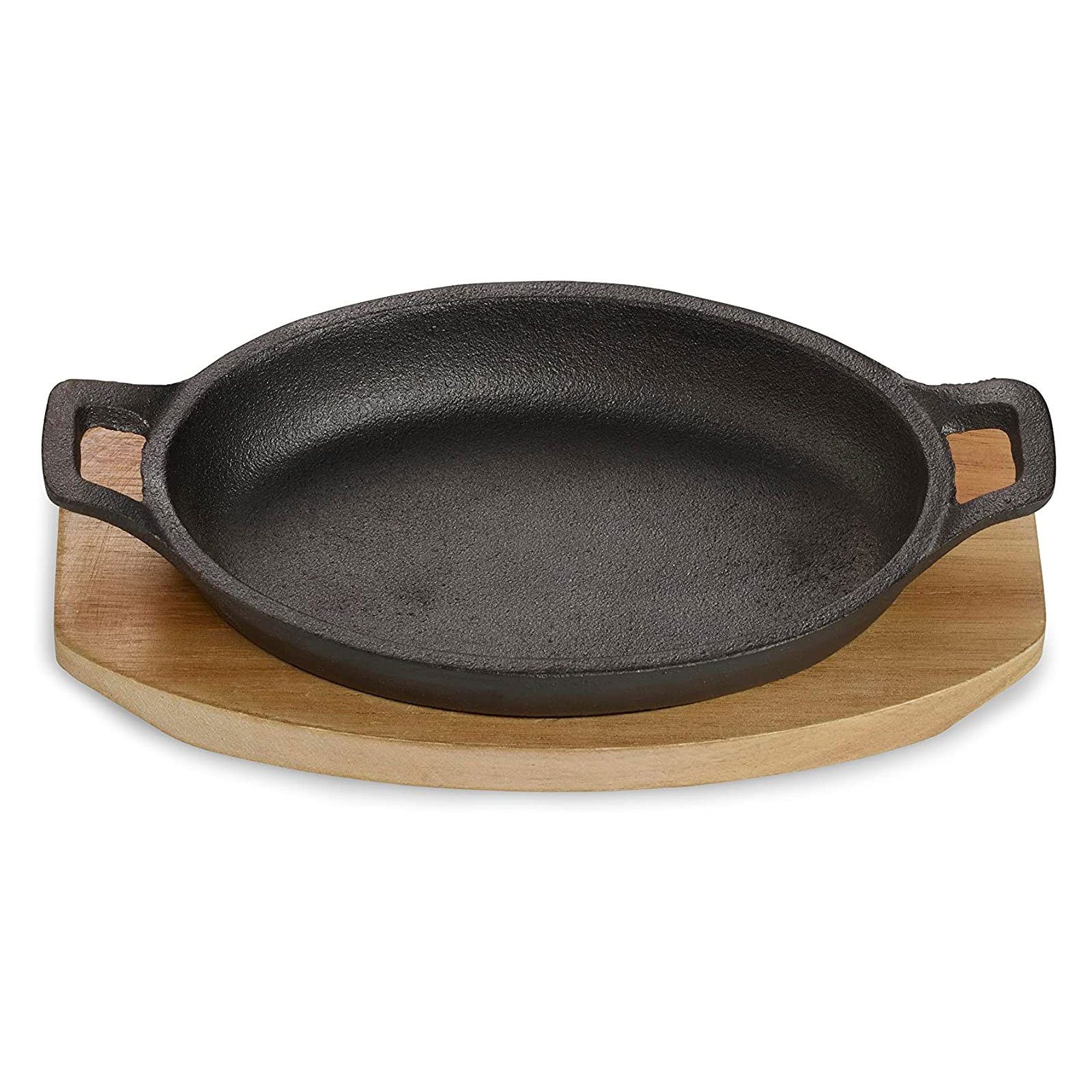 Ob Gemüsepfanne, Bratkartoffeln oder gegrillte Peperoni: Mit der stilvollen Servierschale von Echtwerk aus massivem Gusseisen verleihen Sie jedem Gericht eine besondere Note. Wer braucht schon Teller? Mit den Servierschalen inkl. Holzuntersetzer können Sie das Essen direkt auf dem Tisch servieren! Das Gusseisen hält die Speisen noch lange warm und versprüht ein rustikales, nostalgisches Ambiente. Die rustikale Servierschale aus Gusseisen bietet ihnen optimale Möglichkeiten zum schönen Anrichten von Meeresfrüchten, Grillkäse, Gemüse, Pilzen, Kartoffeln, Süßspeisen oder Pasta.