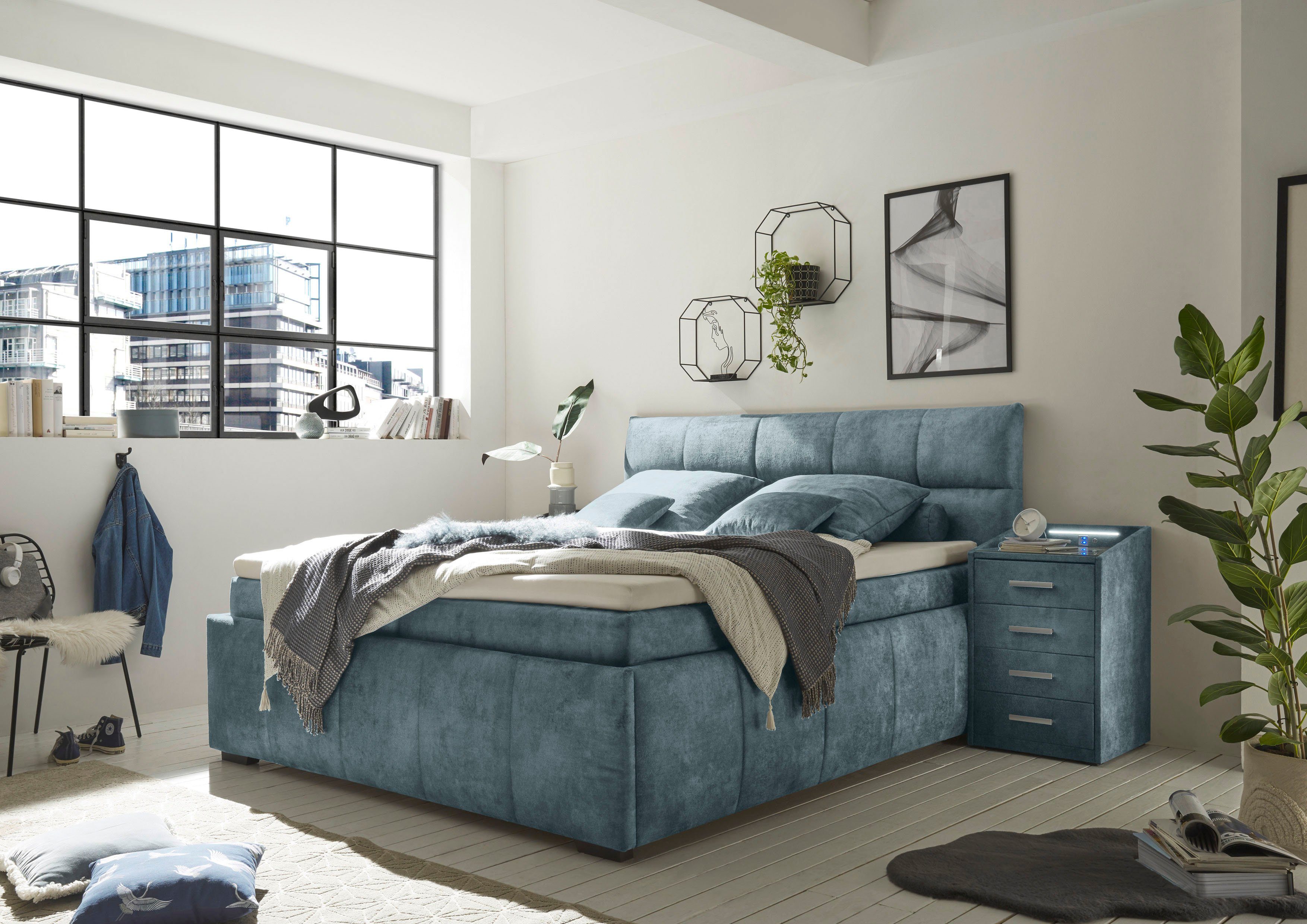 Versehen mit praktischen Bettkästen lassen sich bei diesem Boxbett »Avidano« von ED EXCITING DESIGN die Tagesdecke und Kissen schnell verstauen. Die 7-Zonen-Tonnentaschen-Federkernmatratze mit einer Höhe von 17 cm überzeugt mit ihrer hohen Punktelastizität, die dafür sorgt, dass nur die belasteten Stellen nachgeben. Durch ihre Struktur ist sie außerdem besonders formstabil, sodass sie schnell in ihren Ursprungszustand zurückkehrt. Mit dem Härtegrad H2 ist sie für ein Körpergewicht bis zu 120 kg geeignet. Der Kaltschaum-Topper ist 6 cm hoch und liegt als zusätzliche Lage auf der Matratze auf. Dabei erhöht er den Schlafkomfort und rundet dein Schlafsystem ab. Das Kopfteil ist 123 cm hoch. Das Montagematerial ist im Lieferumfang enthalten, sodass du dir keine Gedanken um das richtige Werkzeug machen musst.