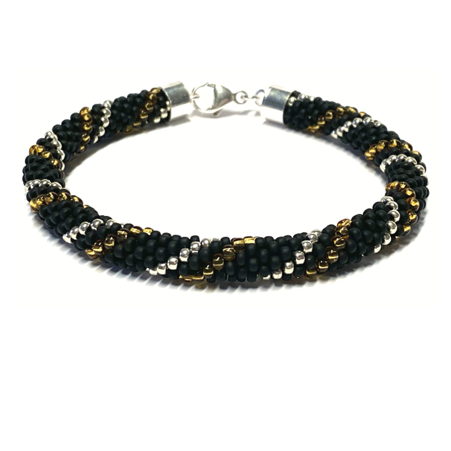 Diese Art der Schlauchketten bestehen aus 1000 en einzeln verhäkelter Glasperlen. Diese werden Perle für Perle aufgefädelt und Schlaufe für Schlaufe zurück gehäkelt. Eine echte und aufwendige Handarbeit. Dabei entstehen herrliche Armbänder für jeden Anlaß passend und zu jedem Outfit passend.