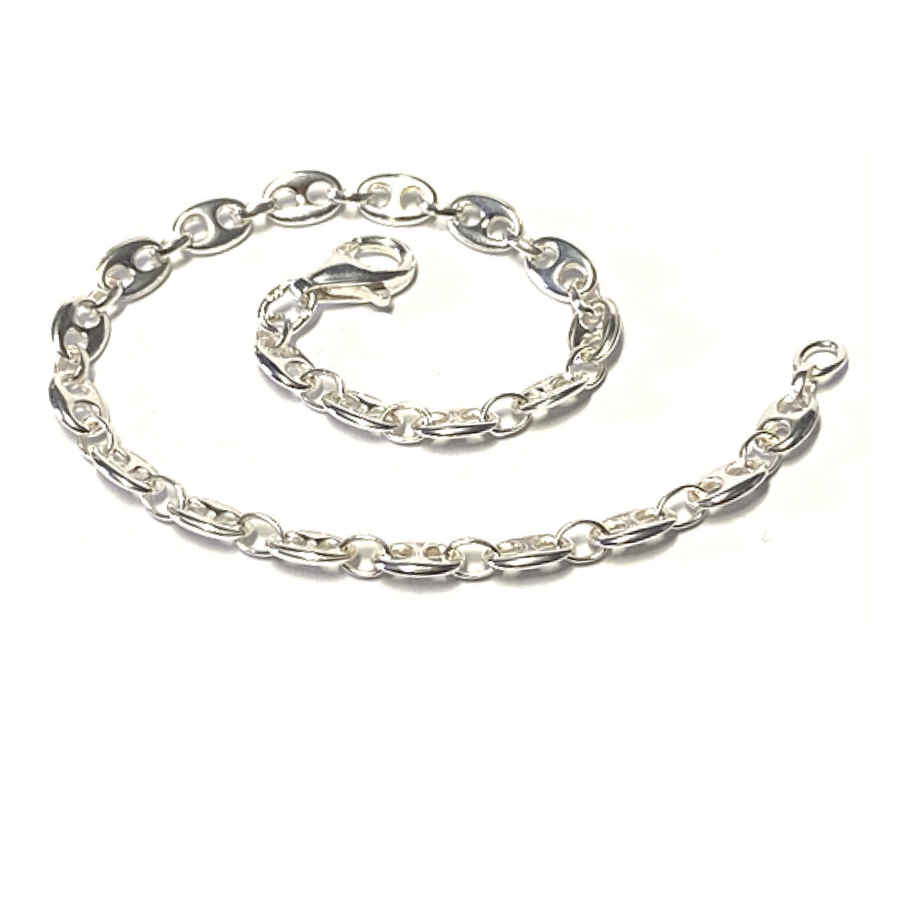 Dieses tolle Armband ist aus 925/- Sterling Silber gefertigt und wurde abschließend in seiner Oberfläche komplett poliert. Die Elemente sind alle miteinander beweglich verbunden, was das Tragen sehr angenehm macht. Verschlossen wird das Armkettchen mit einem stabilen Karabiner und einer Gegenöse.