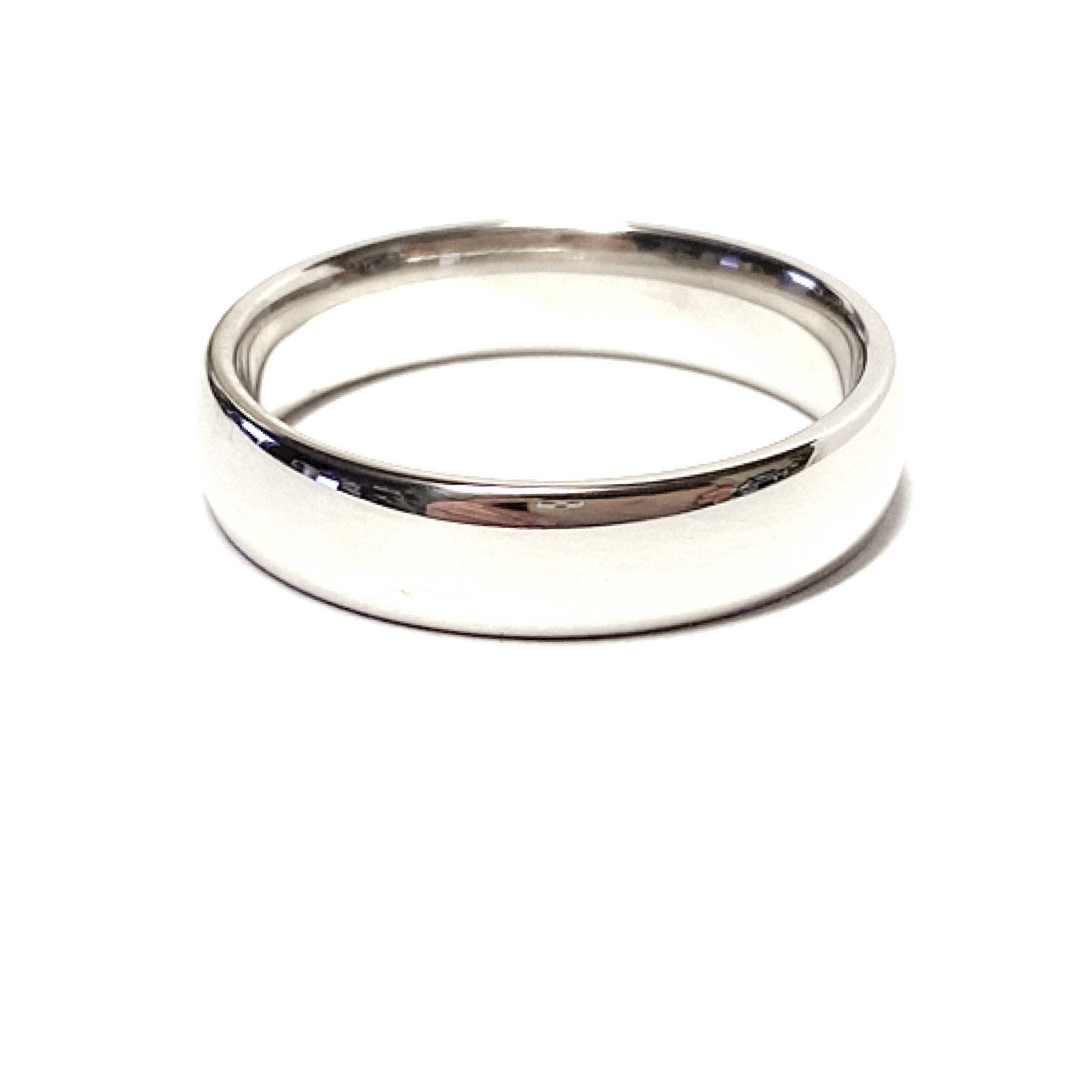 Dieser schlichte Bandring ist aus 925/- Sterling Silber gefertigt und wurde abschließend, als Anlaufschutz, rhodiniert. Die Oberfläche des Ringes ist poliert und leicht gewölbt. Auch die Innenseite der Ringschiene ist bombiert (gewölbt), damit sich der Ring angenehm Auf- und Absetzten läßt, trotz seiner Breite.