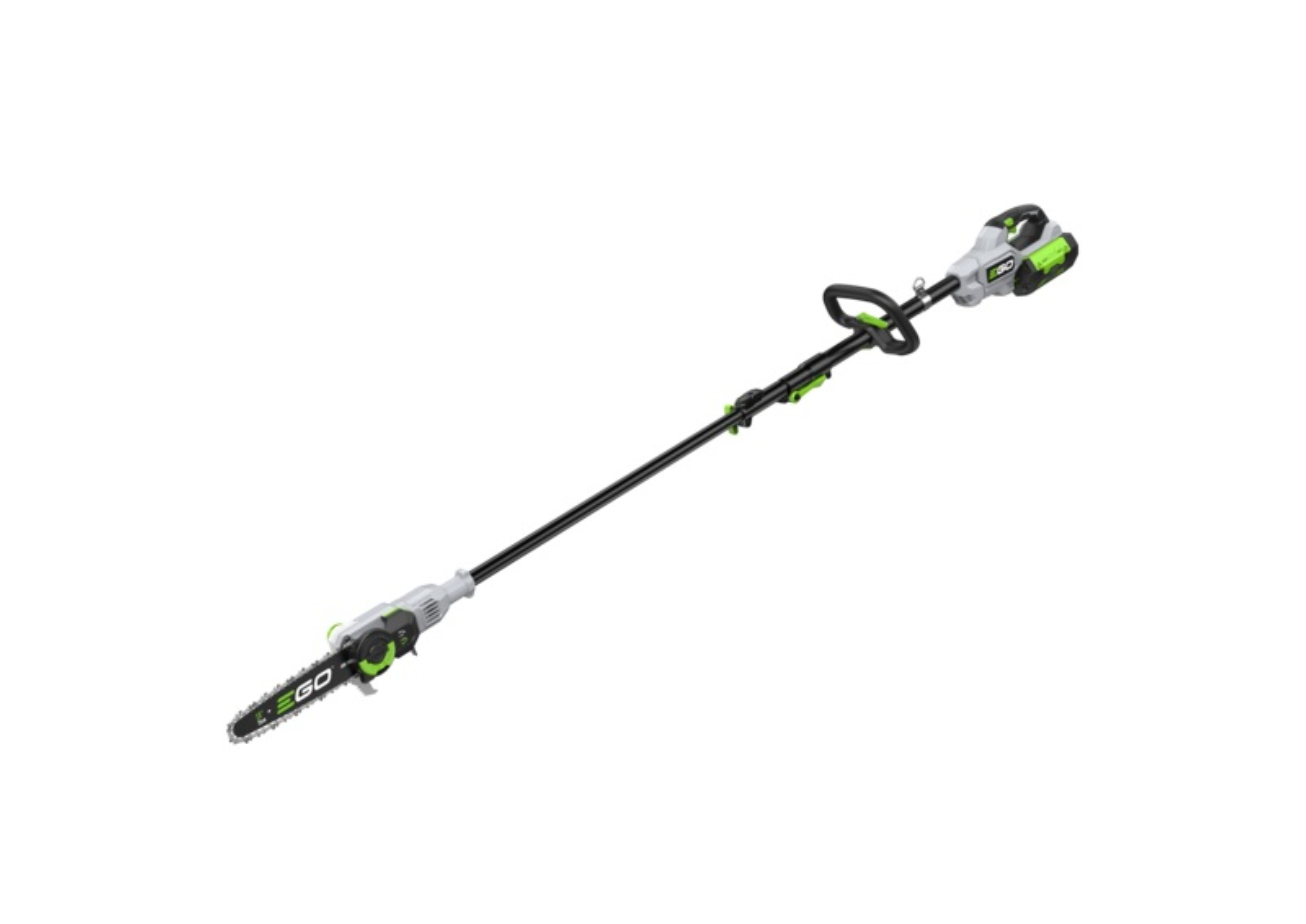Mit dem EGO Hochentaster gehören Leitern und schwierige Baumpflegearbeiten der Vergangenheit an. Mit einem 25 cm langen Schwert und einer Kettengeschwindigkeit von bis zu 20 m/s, sägt der EGO Hochentaster hohe Äste mit Leichtigkeit. Der Sägekopf und der Schaft sind über einen Kupplungsmechanismus mit der Antriebseinheit verbunden, so dass der Hochentaster auch kompakt verstaut werden kann. Die Teleskopfunktion mit bis zu 4 m Длина erreicht jeden noch so nahen oder entfernten Ast. Der leichte und extrem robuste Carbon-Schaft und die LED-Präszisionsleuchte erleichtern die Werkzeugführung und sorgen für exakte Schnitte.