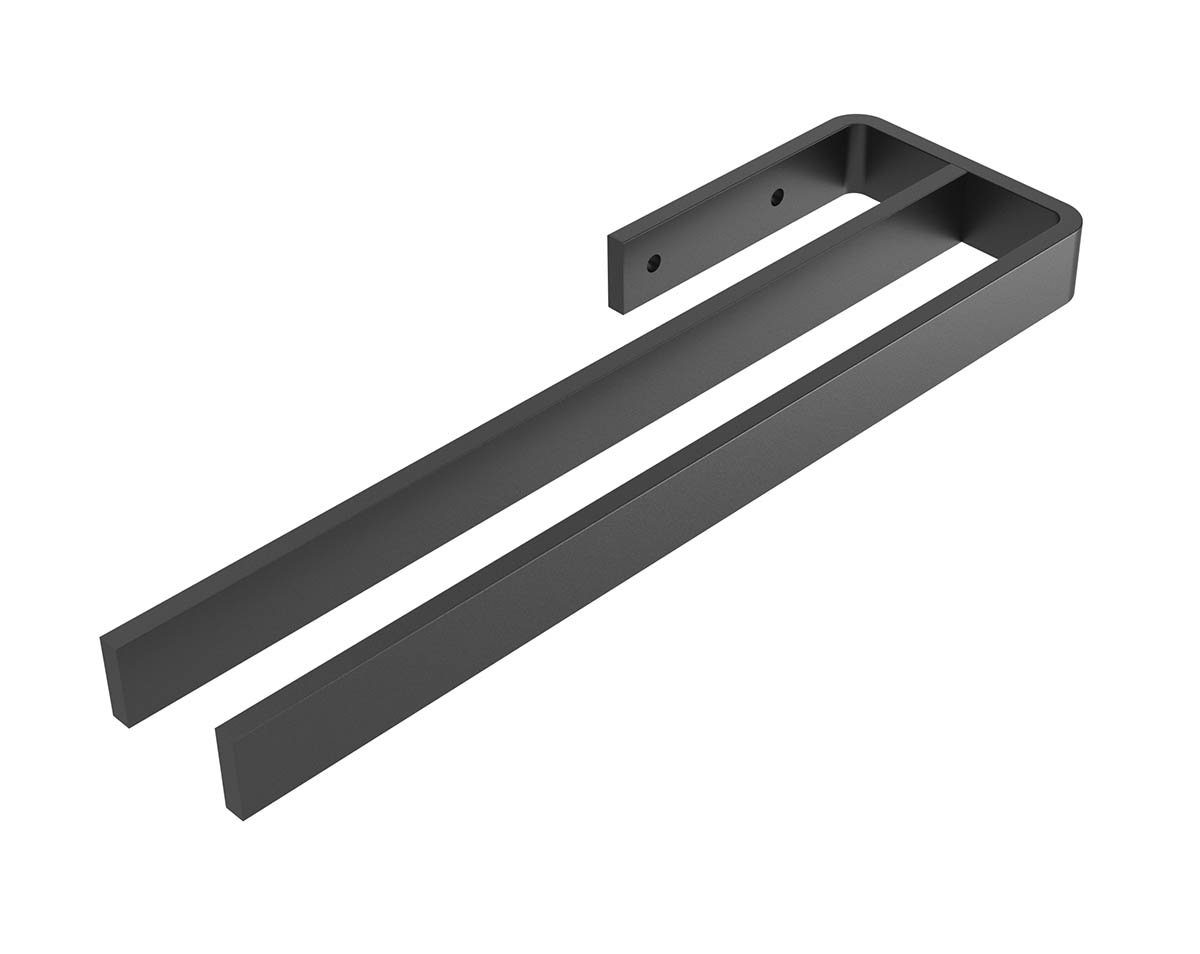 Mit seinem schwarz-matten Finish und zwei getrennten Armen ist dieser Bath-O-Line Handtuchhalter die perfekte Wahl für moderne Badezimmer. Die pulverbeschichtete Oberfläche wirkt edel und robust zugleich – perfekt kombinierbar mit schwarzen Badarmaturen.