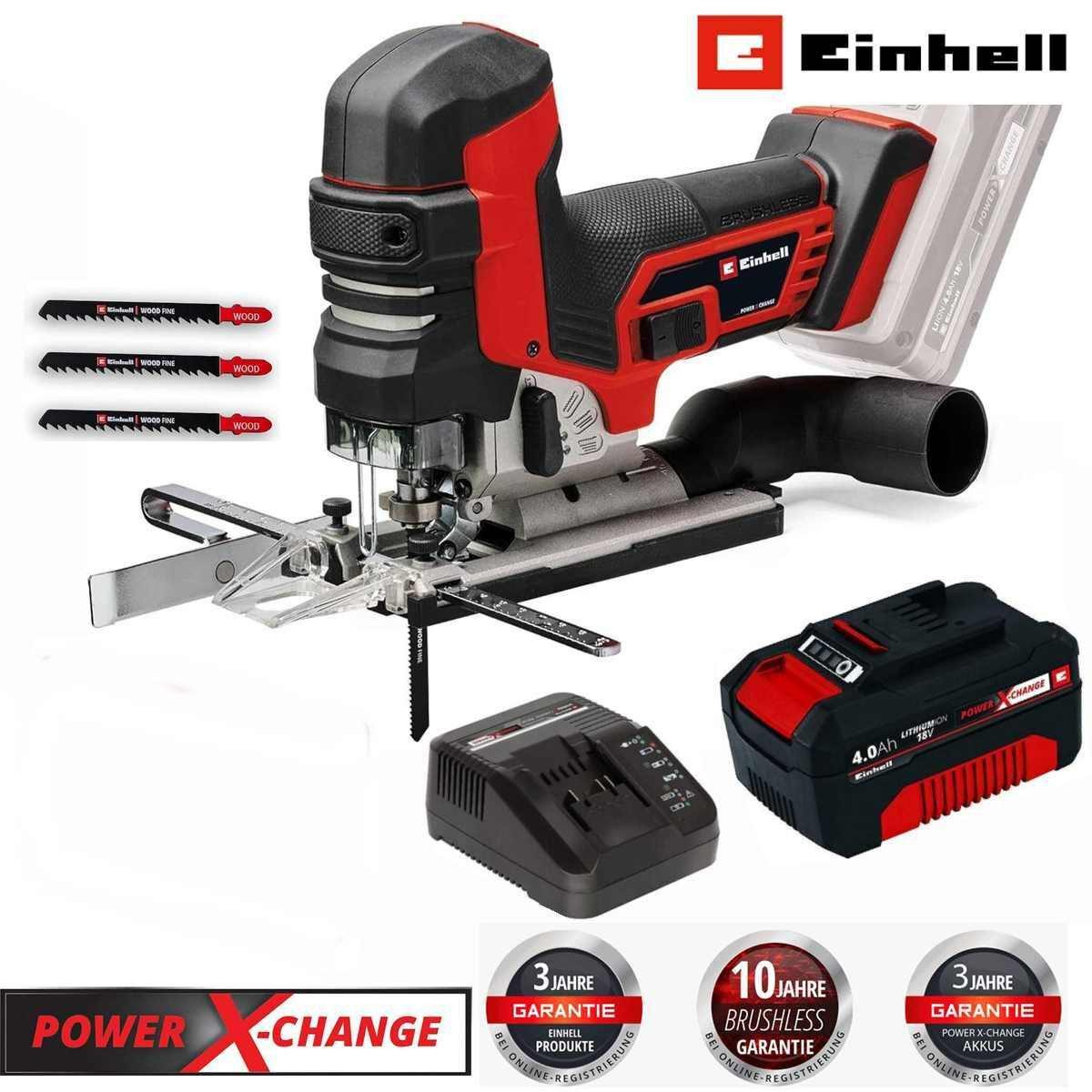 Einhell Professional Akku-Stichsäge TP-JST 18/135 Li BL Power X-Change , 18 V, 135 mm Schnitttiefe in Holz, 26 mm Hubhöhe, Brushless, T-Style-Griff, 3x Sägeblatt, mit Akku 4.0 Ah, Ladegerät
