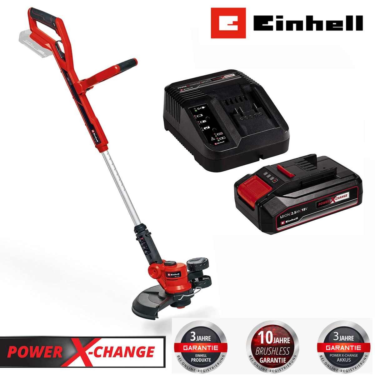 Einhell Akku-Rasentrimmer GE-CT 18/30 Li-Solo Power X-Change (Li-Ion, 18V, Schnittbreite 30 cm, Motorkopf 90° drehbar & neigbar, inkl. Fadenspule, mit Akku 2.5 Ah und Ladegerät)