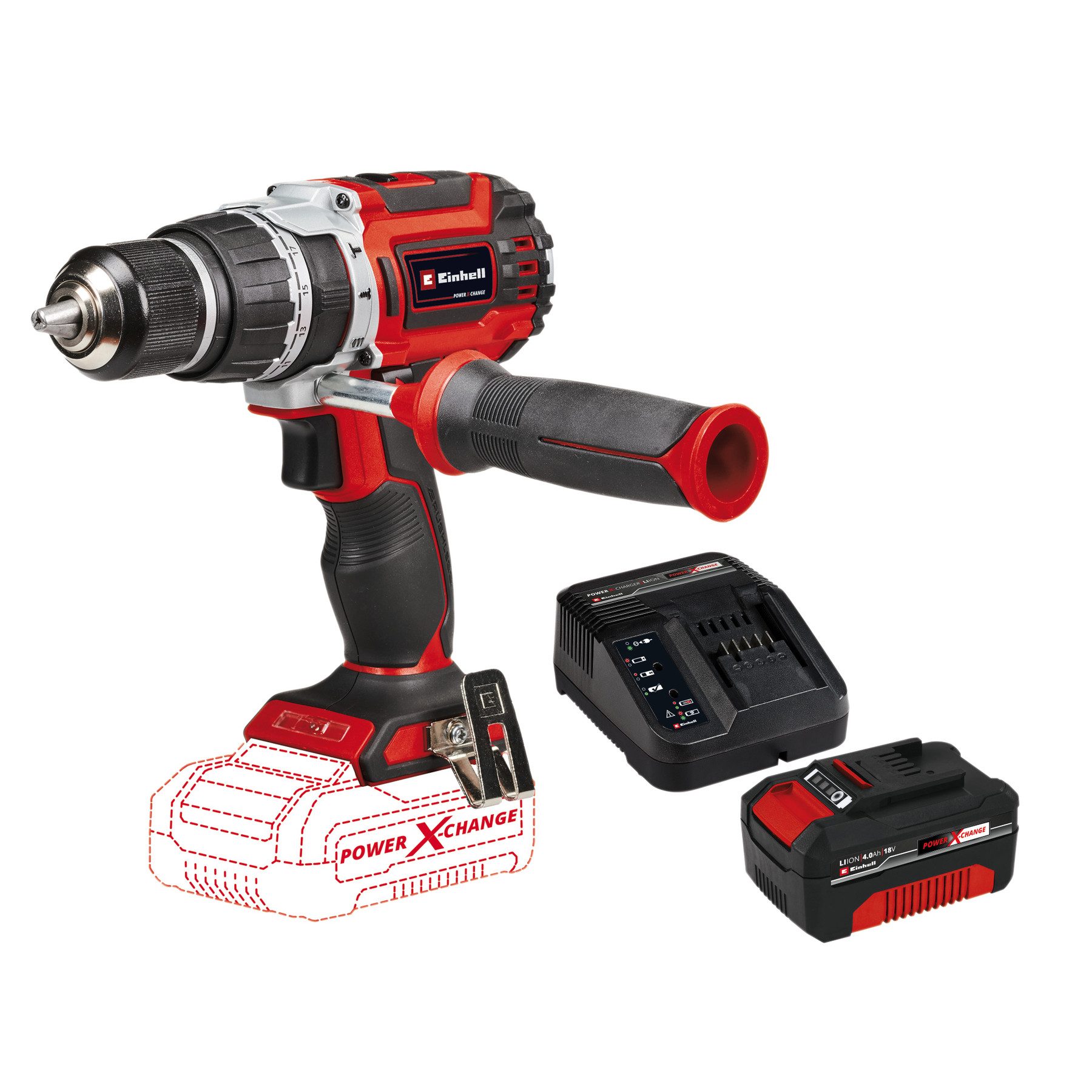 Der Einhell Akku-Schlagbohrschrauber TP-CD 18/60 Li-i Brushless bietet mit dem bürstenlosen Motor mehr Leistung und eine längere Laufzeit. Als Mitglied der Power X-Change Familie können alle Akkus der Linie verwendet werden. Zusätzlich verfügt der Schlagbohrschrauber über ein Zweigang-Getriebe für kraftvolles Schrauben und schnelles Bohren. Die Quick-Stop-Funktion ermöglicht einen einfachen Werkzeugwechsel für den Einsatz in das hochwertige 13 mm Metallbohrfutter. Die Gelenke des Anwenders werden durch den Zusatzhandgriff geschont, ein ergonomisches Design mit Softgrip sorgt für ein angenehmes Arbeiten. Das LED-Licht bietet eine gute Sicht auf den Arbeitsbereich.