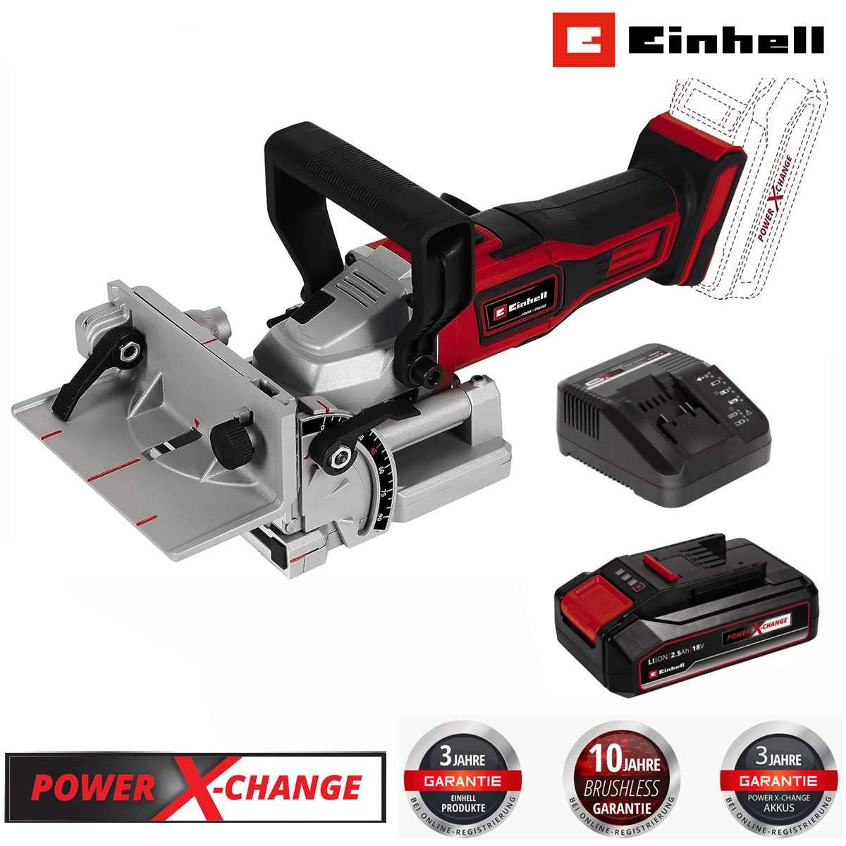 Die Einhell Akku-Flachdübelfräse TE-BJ 18 Li leistet kabellose, akkurate Unterstützung: Als Mitglied der Power X-Change-Familie ist die Flachdübelfräse flexibel einsetzbar, unabhängig von Stromquellen, und jederzeit sofort einsatzbereit. Die massive Aluminiumausführung ermöglicht präzises Fräsen von Nuten. Die Flachdübelfräse von Einhell eignet sich für alle handelsüblichen Flachdübelgrößen bis zum Typ 20. Der flexible Helfer punktet mit stufenlosen Ausrichtungsmöglichkeiten sowohl bei der Höheneinstellung als auch bei der Winkeleinstellung bis zu 90° Grad. Die Frästiefe lässt sich mittels der 6-stufigen Schnellverstellung anpassen. Die Spindelarretierung sorgt für einen einfachen und schnellen Fräserwechsel. In der Lieferung inklusive sind ein Stirnlochschlüssel für den Fräserwechsel und ein Staubfangsack für einen staubfreien Arbeitsbereich. Durch den Absaugadapter ist die Akku-Flachdübelfräse auch kompatibel mit den Einhell Nass-Trockensaugern.