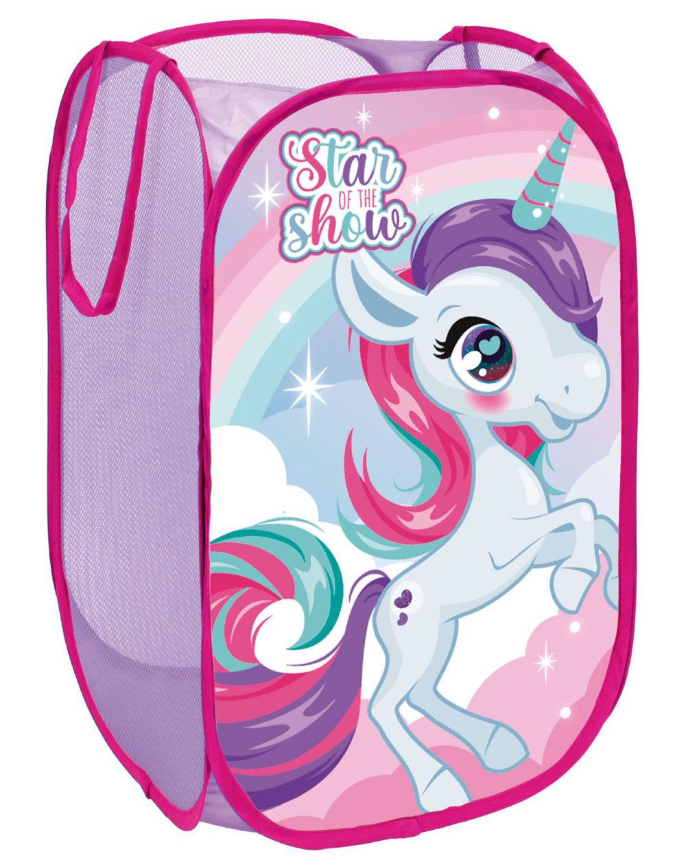 Die Einhorn Sparkle Spielzeugaufbewahrung ist die ideale Lösung, um Spielzeug und andere Kleinigkeiten ordentlich zu verstauen. Mit einem bezaubernden Einhorn-Design und funkelnden Details bringt dieser Aufbewahrungskorb Magie in jedes Kinderzimmer. Er sorgt für mehr Ordnung und fügt sich gleichzeitig harmonisch in das Zimmer ein – perfekt für kleine Träumer und Fans des fantastischen Einhorn-Motivs.