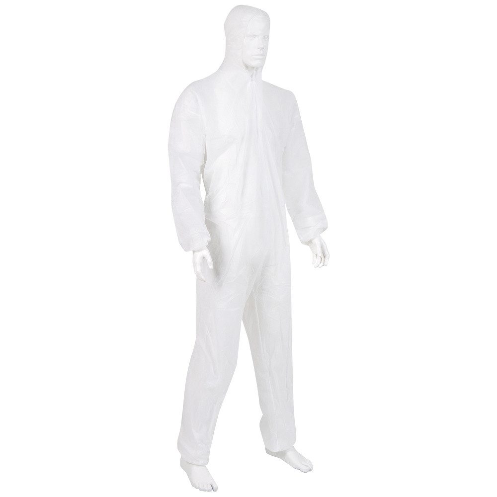 Overall. PP-Vlies, antistatisch, Reißverschluss vorn, Beine, Ärmel und Kapuze mit Gummizug, einzeln