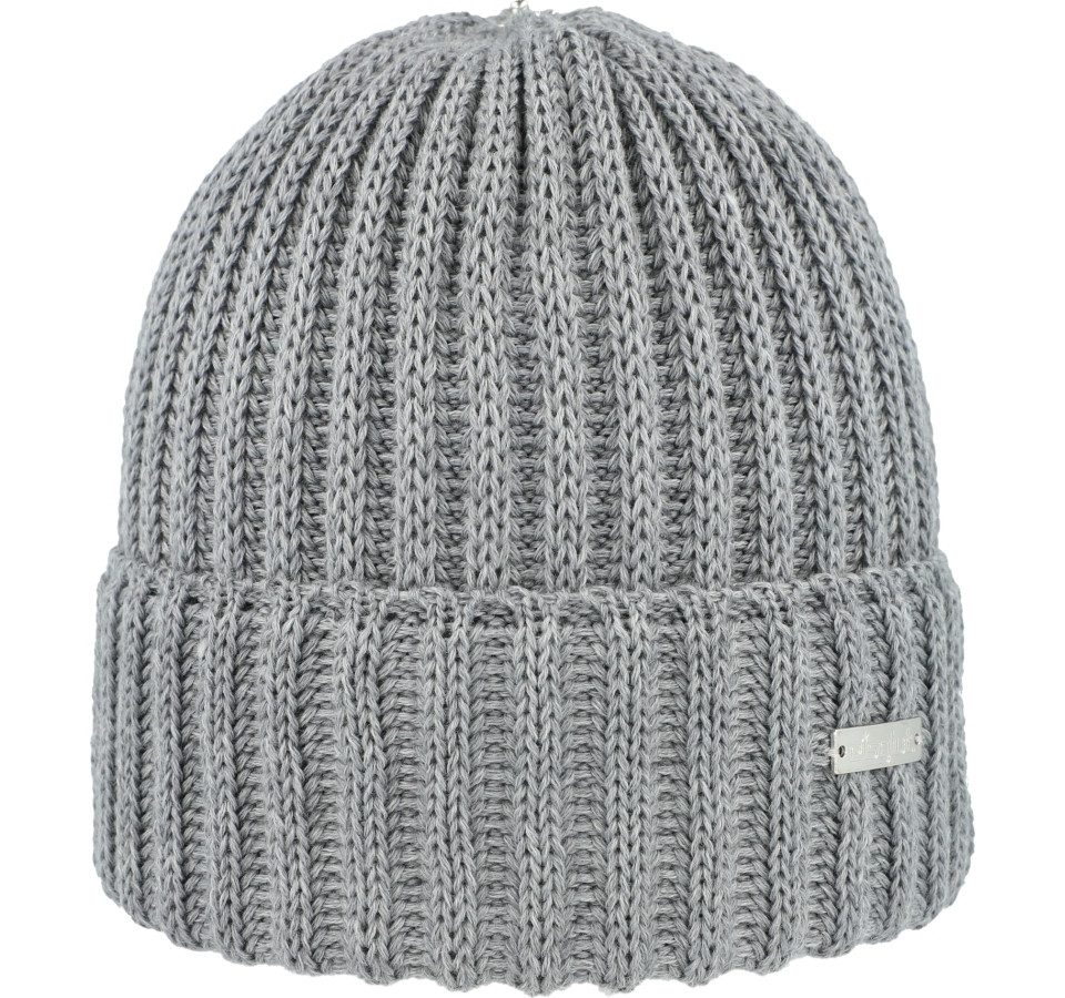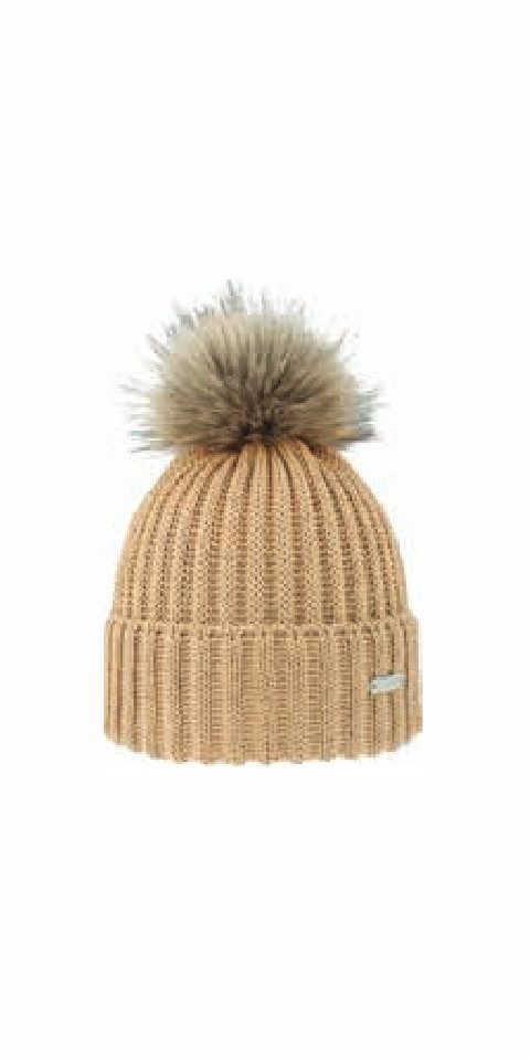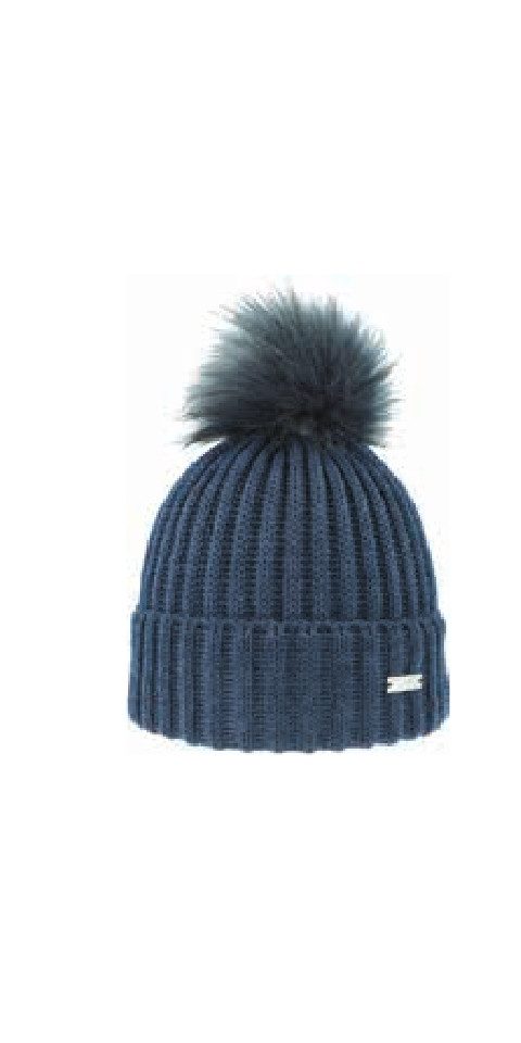 Schöne und warme Strickmütze aus 50% Merinowolle mit abknöpfbarem Kunstfellbommel.