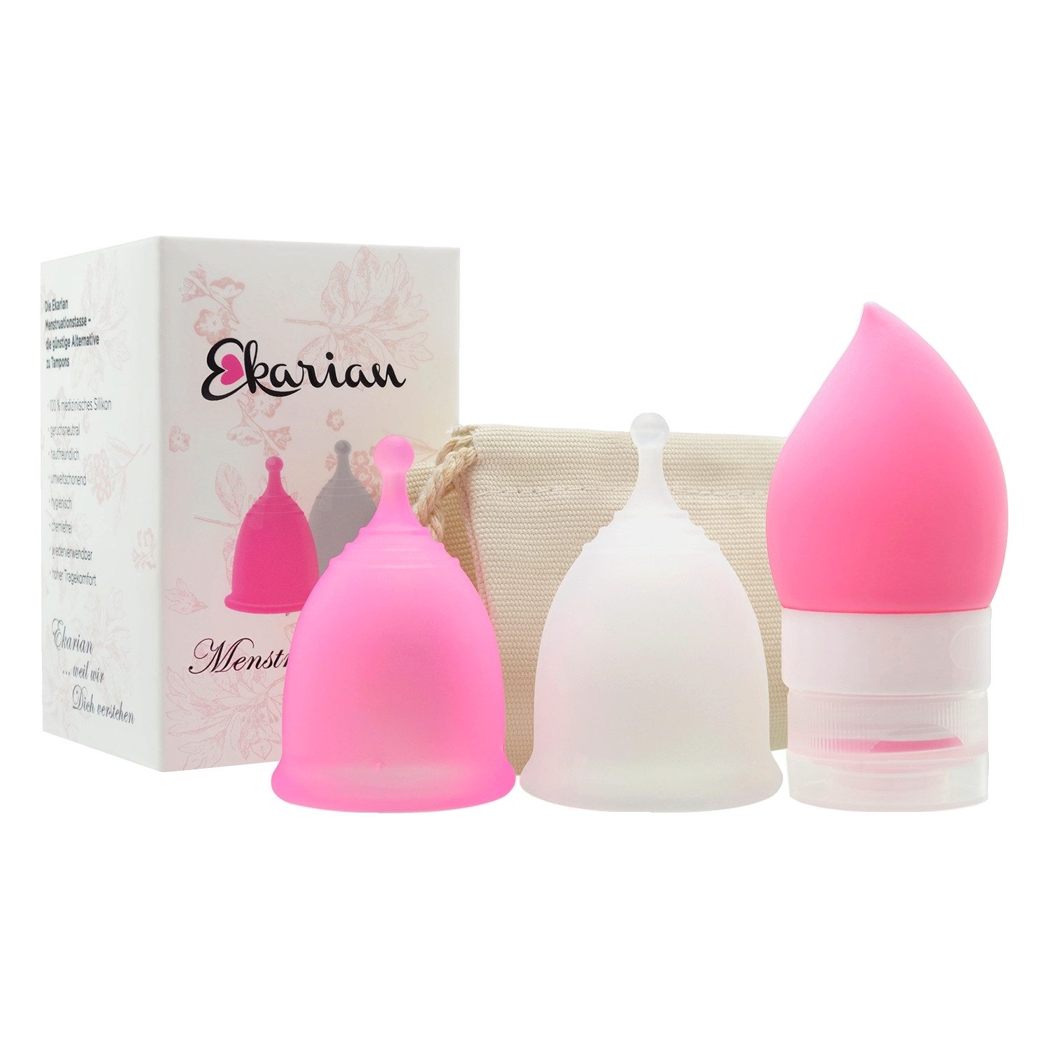 Erleben Sie die erstklassige Premium-Qualität der Menstruationstasse von Ekarian Deutschlands #1 Menstruationstassen Set - entworfen, um Ihnen eine sorglose Periode zu ermöglichen; unser Set ist das Erstklassigste, was am Markt verfügbar ist und von höchster Qualität