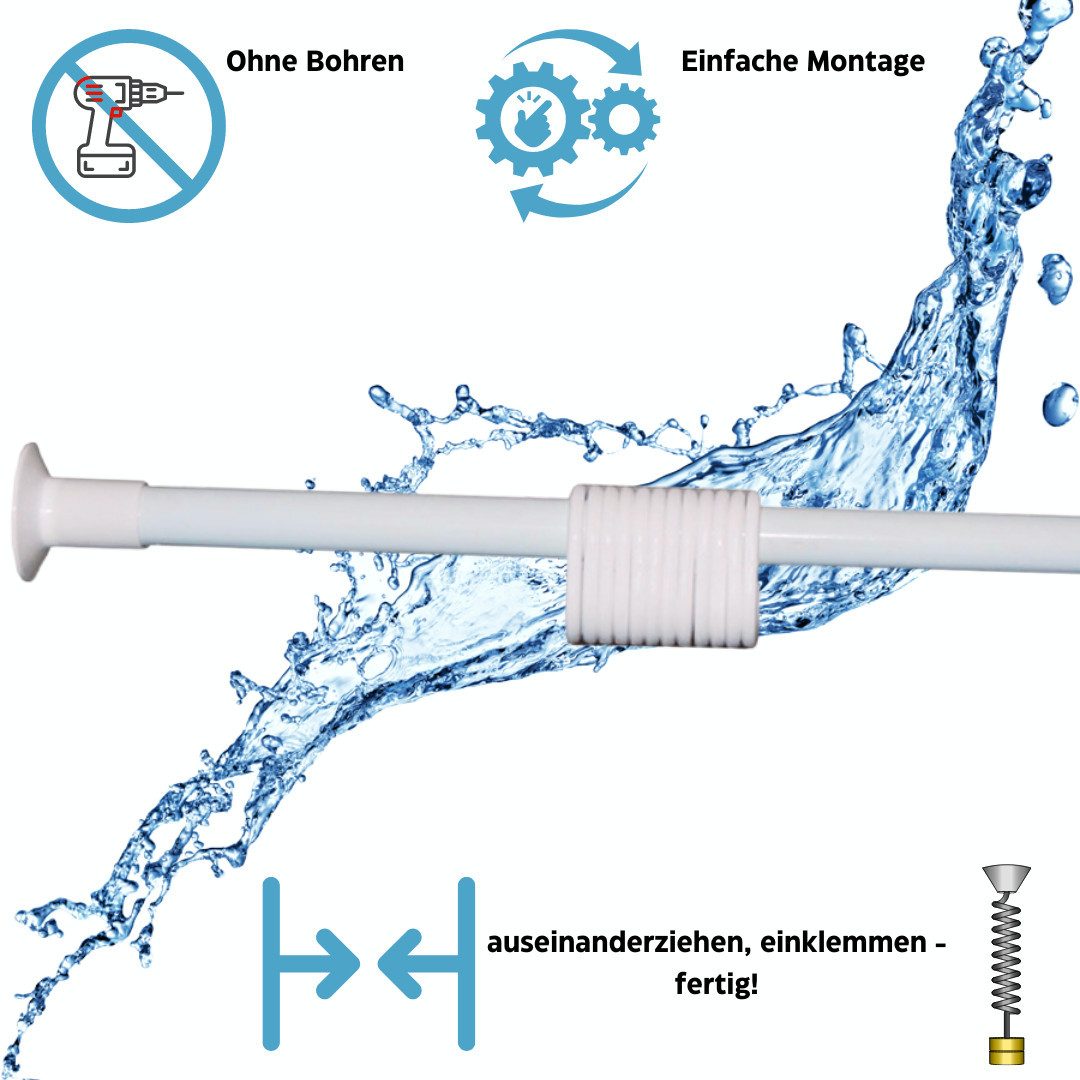 Lieferumfang | DUSCHVORHANGSTANGE / TELESKOPSTANGE von 150 bis 260 cm verstellbar in Weiß inkl. Ringe |