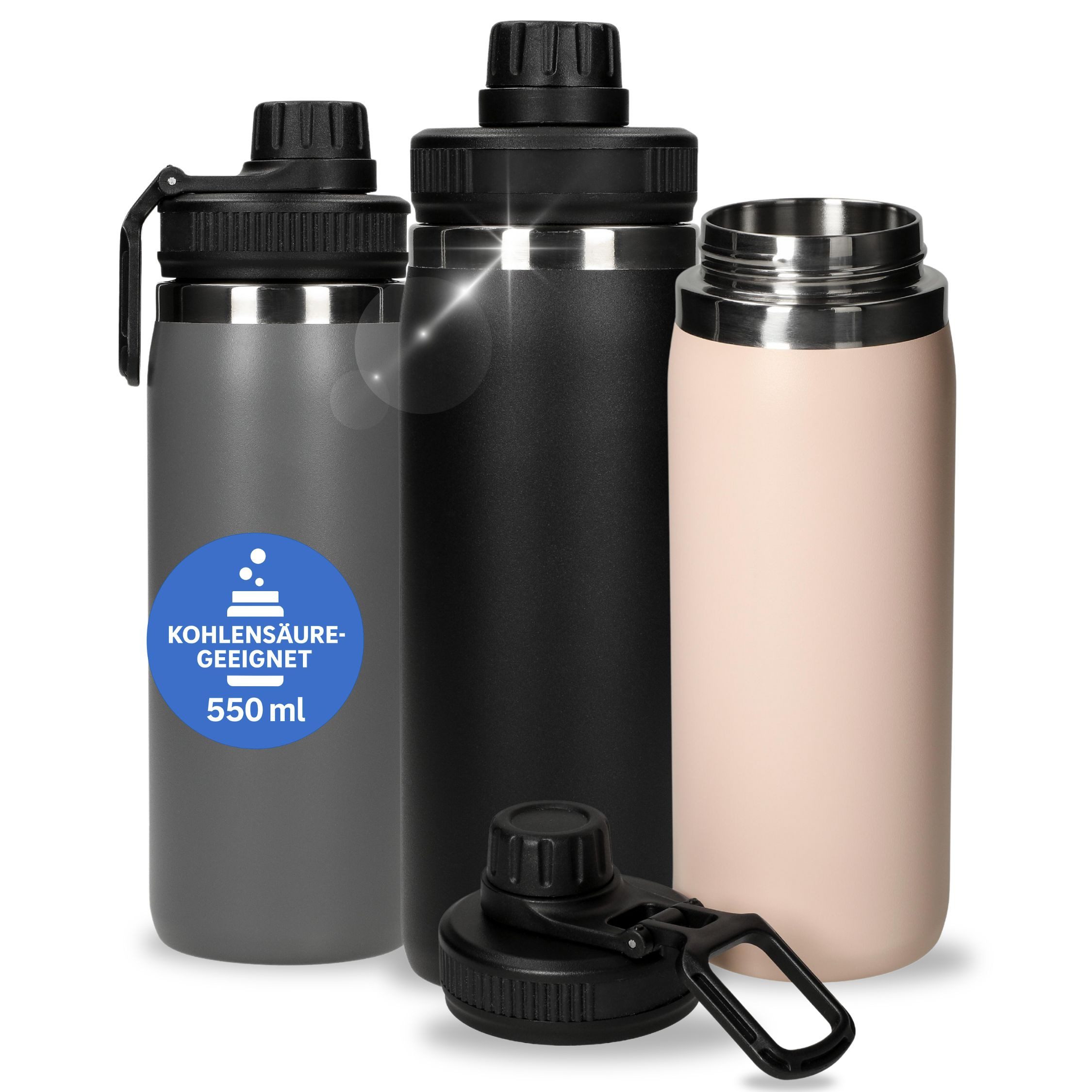 Die Vakuumflasche "Stockholm" ist die perfekte Lösung für alle, die ihre Getränke immer auf der richtigen Temperatur halten möchten. Mit einem Fassungsvermögen von 550 ml bietet sie ausreichend Platz für Ihr Lieblingsgetränk und sorgt dafür, dass es bis zu 8 Stunden warm oder bis zu 18 Stunden kalt bleibt. Dank ihrer exzellenten Isolierung können Sie sie problemlos für den ganzen Tag mitnehmen und genießen, ohne sich Sorgen machen zu müssen, dass Ihr Getränk an Temperatur verliert. Hergestellt aus robustem Edelstahl ist die "Stockholm" Vakuumflasche besonders langlebig. Sie bietet Ihnen eine umweltfreundliche und sichere Möglichkeit, Ihre Getränke zu transportieren. Mit ihrem praktischen Henkel können Sie sie überallhin mitnehmen, sei es zum Sport, in die Schule, zum Wandern oder einfach als täglicher Begleiter im Büro oder unterwegs. Die Flasche ist mit einem Schraubverschluss ausgestattet, der dafür sorgt, dass Ihre Getränke sicher verschlossen bleiben und keine Flüssigkeit ausläuft. Zudem eignet sie sich hervorragend für kohlensäurehaltige Getränke, sodass Sie auch sprudelnde Limonade oder Mineralwasser problemlos transportieren können. Dank ihrer kompakten Размер und der hohen Isolierleistung ist diese Thermosflasche sowohl für Kinder als auch für Erwachsene perfekt geeignet. Sie können sie sowohl für heiße als auch kalte Getränke verwenden und sich auf eine lange Haltbarkeit verlassen. Die Vakuumflasche ist einfach zu reinigen und pflegeleicht, sodass Sie sie problemlos täglich verwenden können. Die Vakuumflasche "Stockholm" ist nicht nur funktional, sondern auch ein stilvolles Accessoire, das Sie problemlos in Ihrer Tasche oder Ihrem Rucksack verstauen können. Genießen Sie jederzeit Ihre Getränke auf der perfekten Temperatur – ob beim Sport, auf Reisen oder einfach im Alltag. Wählen Sie die "Stockholm" Vakuumflasche für einen nachhaltigen und praktischen Trinkgenuss.