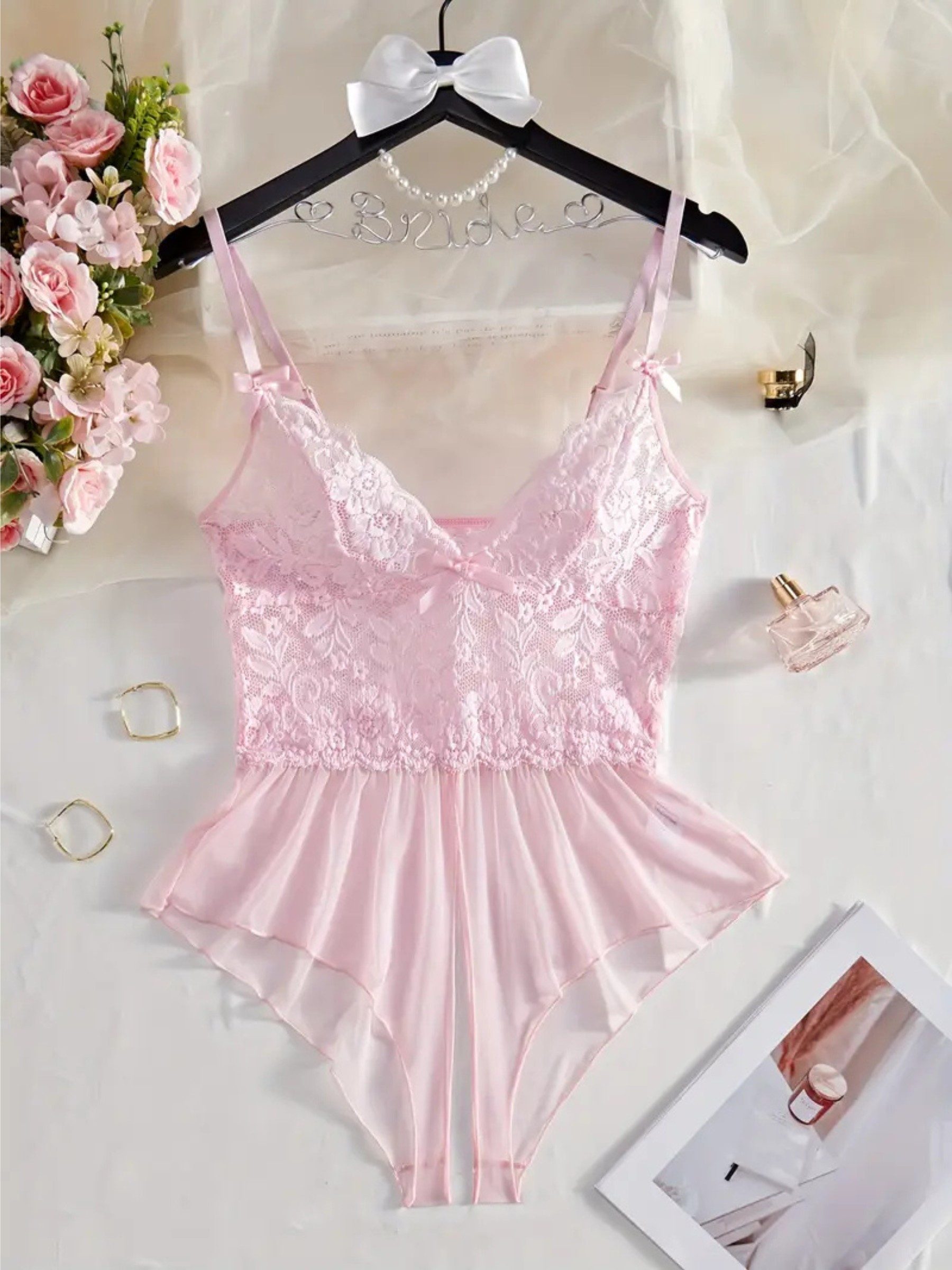 Dieser sinnliche Spitzen-Body mit ouvertem Schritt vereint romantische Eleganz mit einem verführerischen Touch. Die feine Spitzenverarbeitung betont das Dekolleté, während der offene Schritt im Rückenbereich eine aufregende Note verleiht. Durch den transparenten Mesh-Stoff erhält das Dessous einen reizvollen Look – perfekt für besondere Anlässe, romantische Nächte oder Hochzeitsmomente. Styling-Tipp: Kombiniere den Body mit halterlosen Strümpfen und High Heels für ein verführerisches Gesamtbild. Perfektes Geschenk: Ideal für Jahrestage, Hochzeiten oder als luxuriöse Überraschung.