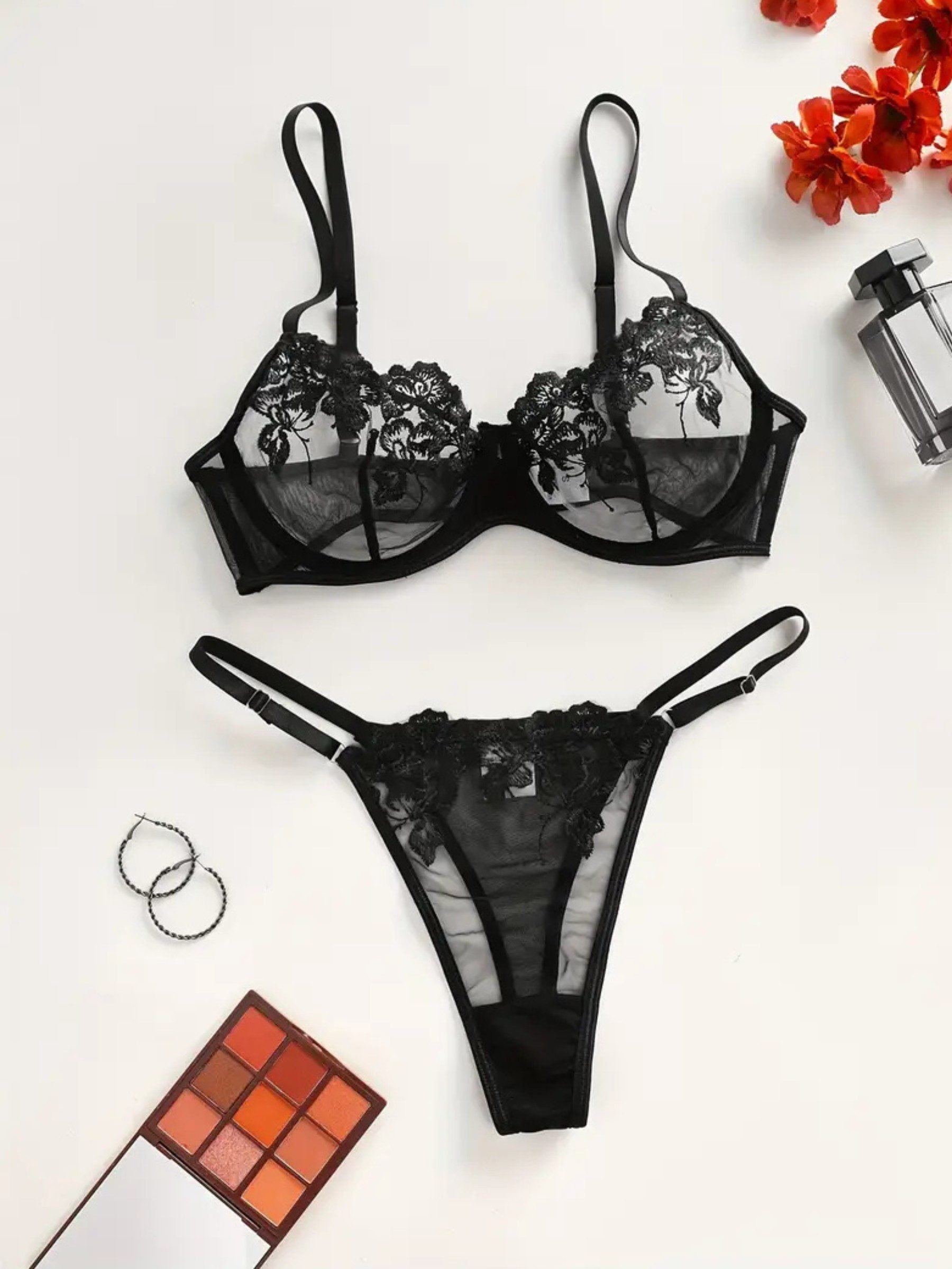 Cupdetails | Halbtransparent mit Blumenstickerei |
