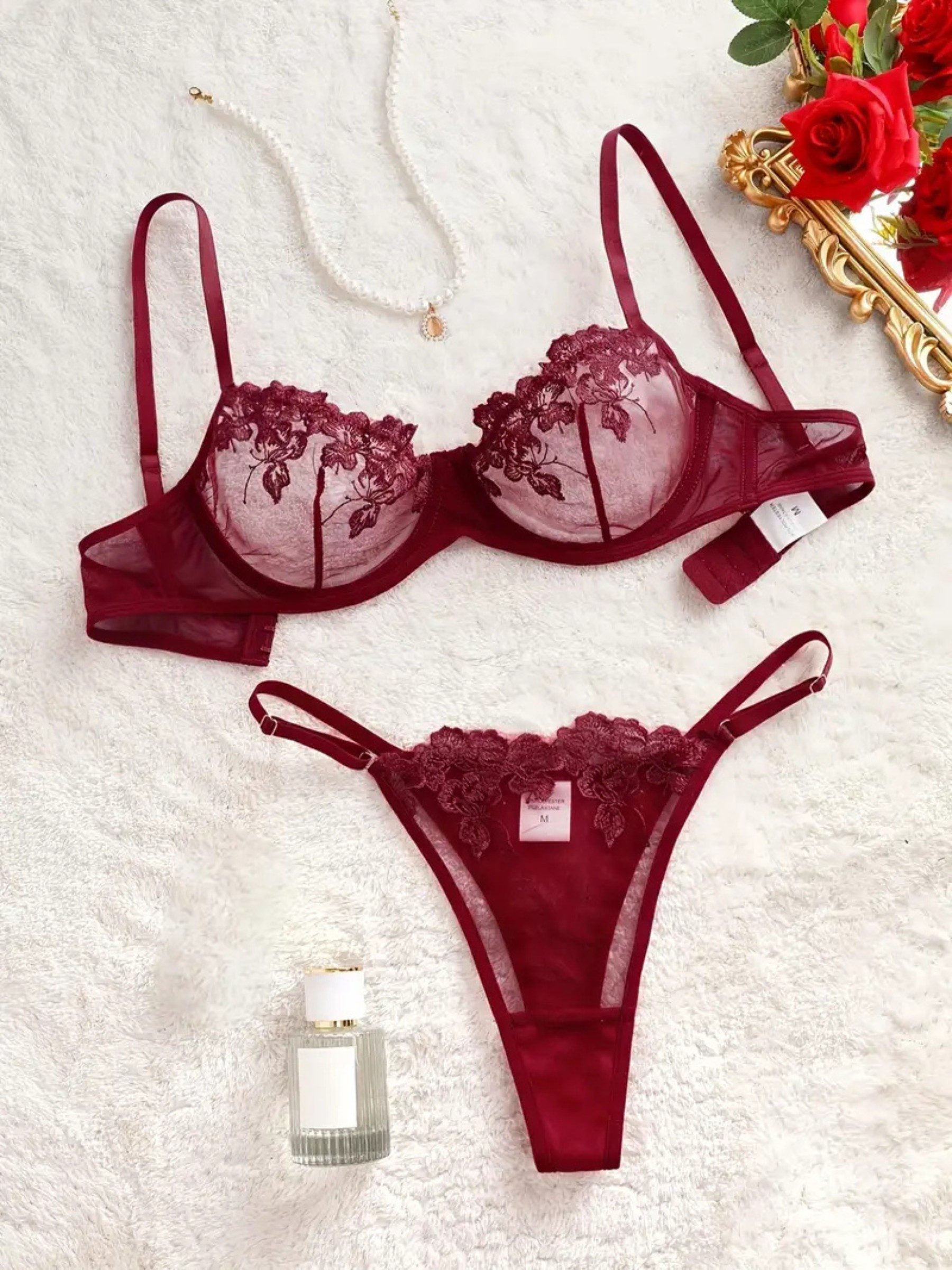 Verleihen Sie Ihrem Alltag einen Hauch von Luxus und Sinnlichkeit mit dem Bügel-BH Sexy Dessous-Set. Dieses zweiteilige Spitzen-Set mit Tanga und zarter Blumenstickerei vereint Eleganz und Verführung. Der Bügel-BH sorgt für eine perfekte Passform und betont Ihre natürliche Silhouette, während die feine Spitze Ihre Haut sanft umschmeichelt. Ob als reizvolle Überraschung oder als verführerisches Statement-Piece – dieses Lingerie-Set lässt Sie sich unwiderstehlich fühlen. Entdecken Sie die perfekte Balance zwischen Stil, Komfort und Leidenschaft – ideal für besondere Anlässe oder um einfach mal sich selbst zu verwöhnen.