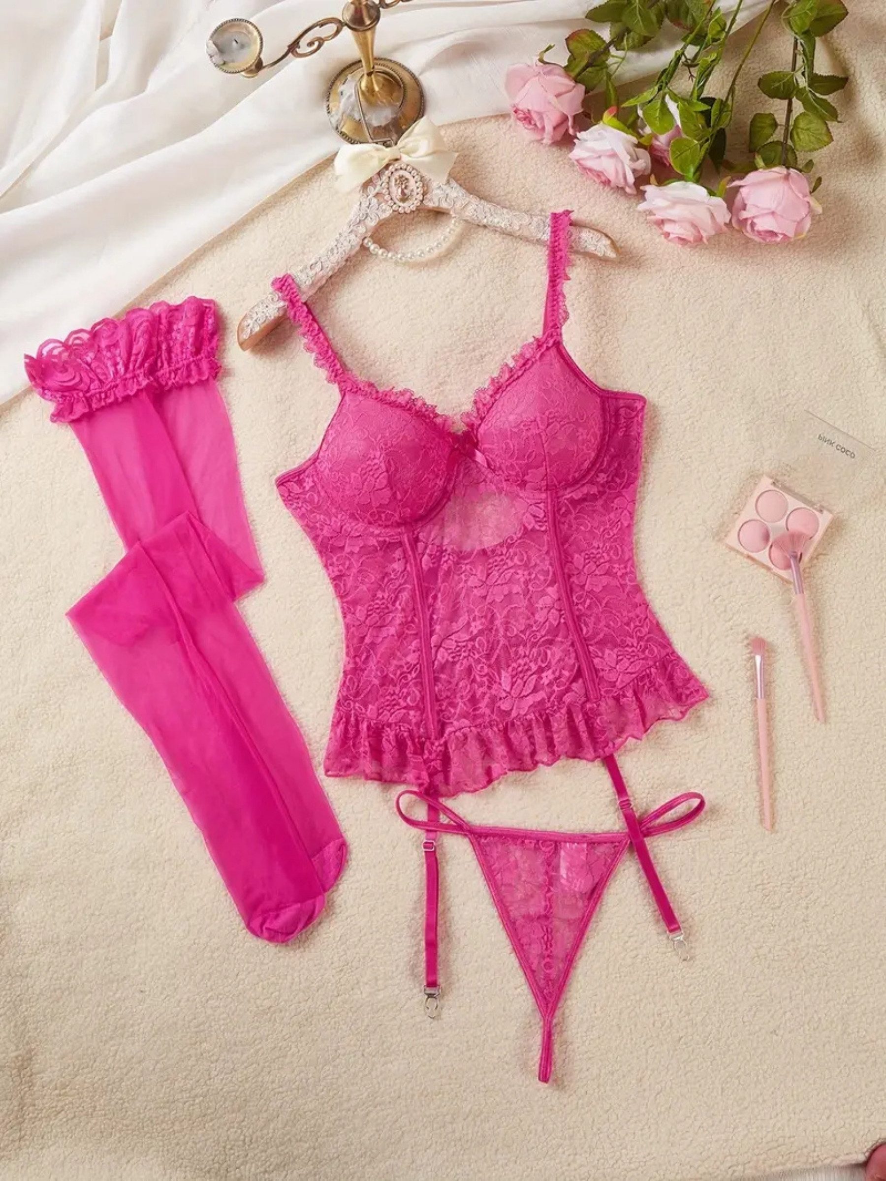 Verführerisch, elegant und stilvoll – dieses Spitzen-Dessous-Set vereint alles, was sinnliche Damenunterwäsche ausmacht. Die detailreich gearbeitete Corsage im Longline-Stil formt sanft die Silhouette und verleiht ein traumhaft feminines Dekolleté. Feine Wimpernspitze, eine zarte Schleifendekoration sowie ein Rüschenabschluss unterstreichen den romantisch-verführerischen Look. Der passende String/Tanga und die feinen Netzstrümpfe mit Spitzenabschluss runden das Dessous-Set perfekt ab. Die verstellbaren Strapshalter sorgen für optimalen Halt und machen das Set zum idealen Begleiter für besondere Anlässe oder als luxuriöse Reizwäsche für selbstbewusste Auftritte.Farbe | чёрный |