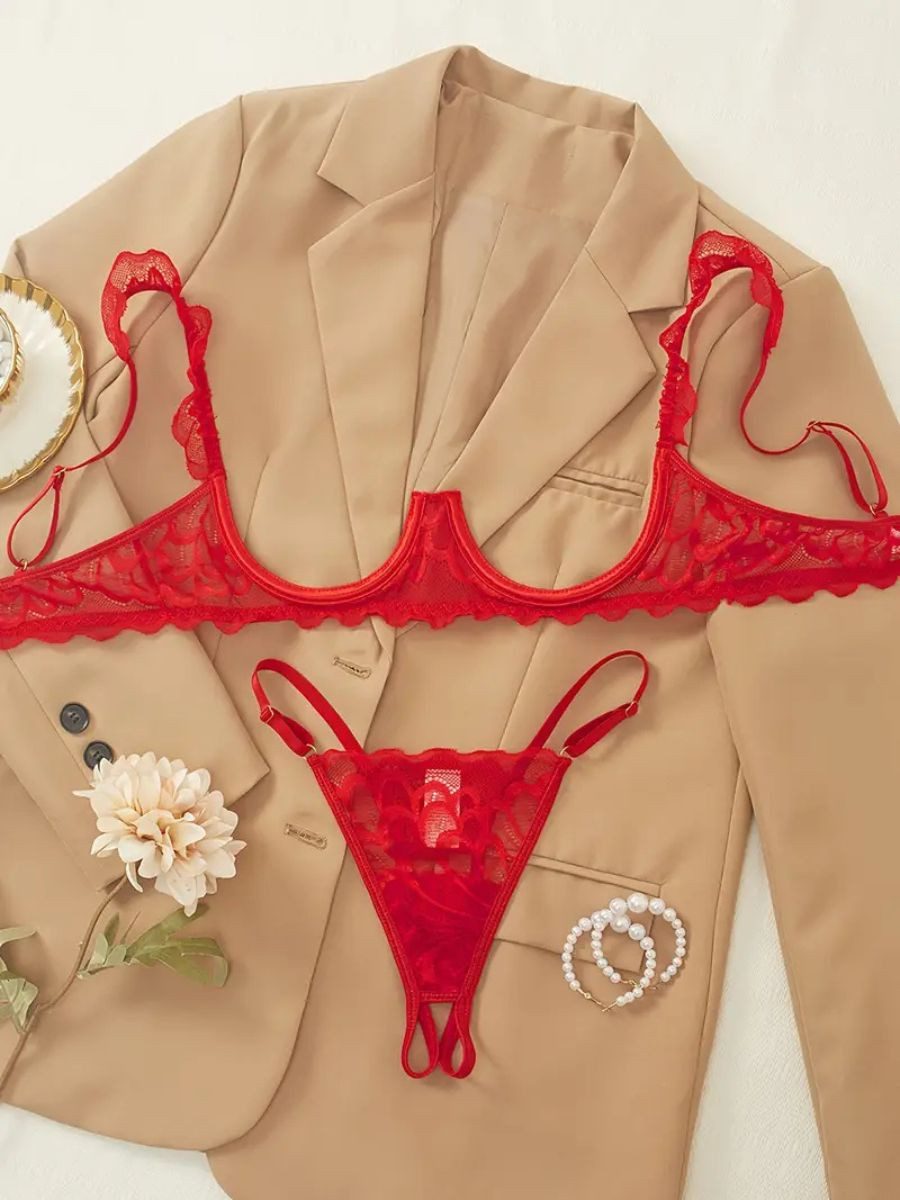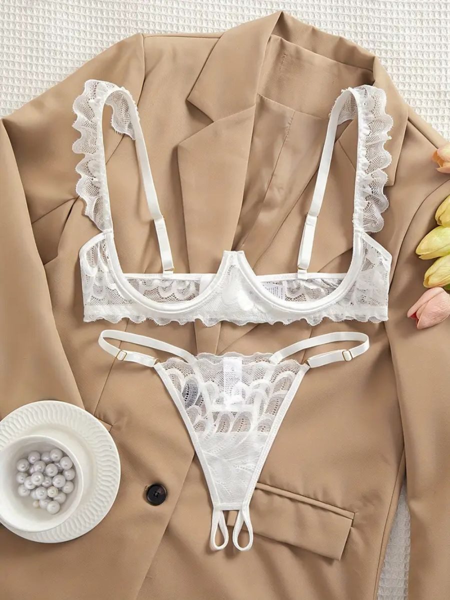 Dieses zweiteilige Dessous-Set überzeugt durch ein raffiniertes Design mit Ouvert-BH und passendem Tanga mit Schrittöffnung. Die offenen Cups setzen das Dekolleté gekonnt in Szene, während feine Spitzendetails und dekorative Cut-Outs dem Set einen eleganten und reizvollen Charakter verleihen. Ideal für besondere Momente, in denen stilvolle Sinnlichkeit im Vordergrund steht.Farbe | зелёный |