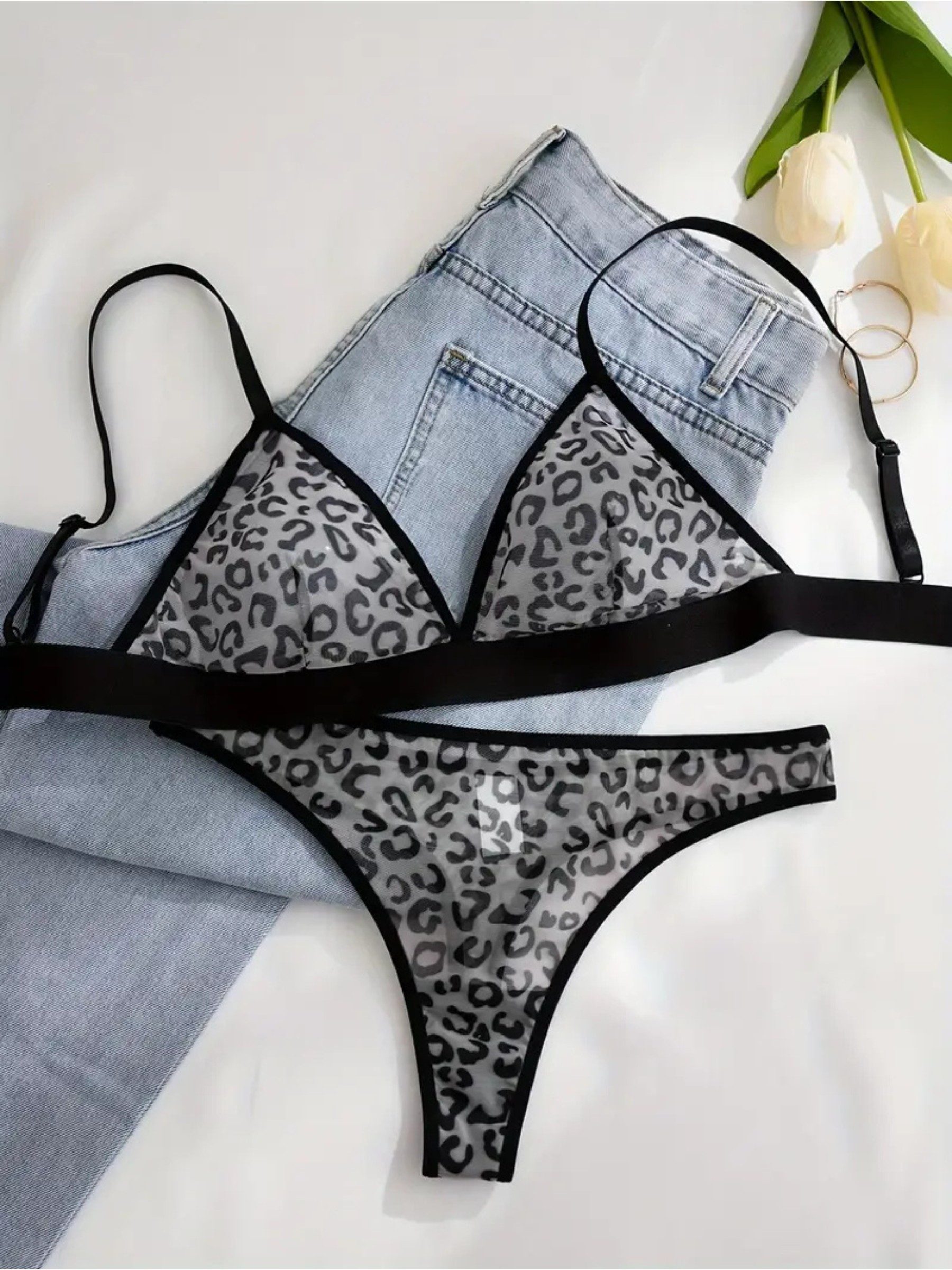 Verleihen Sie Ihrer Wäschekollektion einen Hauch von Luxus mit diesem Triangel-BH Eleganten Dessous-Set. Das 2-teilige Set mit bügellosem BH und Tanga begeistert durch ein stilvolles Druckmuster und transparente Mesh-Einsätze. Der bügellose Schnitt bietet natürlichen Tragekomfort und maximale Bewegungsfreiheit, während das hochwertige Material für eine perfekte Passform sorgt. Ob für besondere Anlässe oder als tägliches Highlight – dieses sexy Lingerie-Set vereint Stil, Eleganz und Sinnlichkeit in einem.