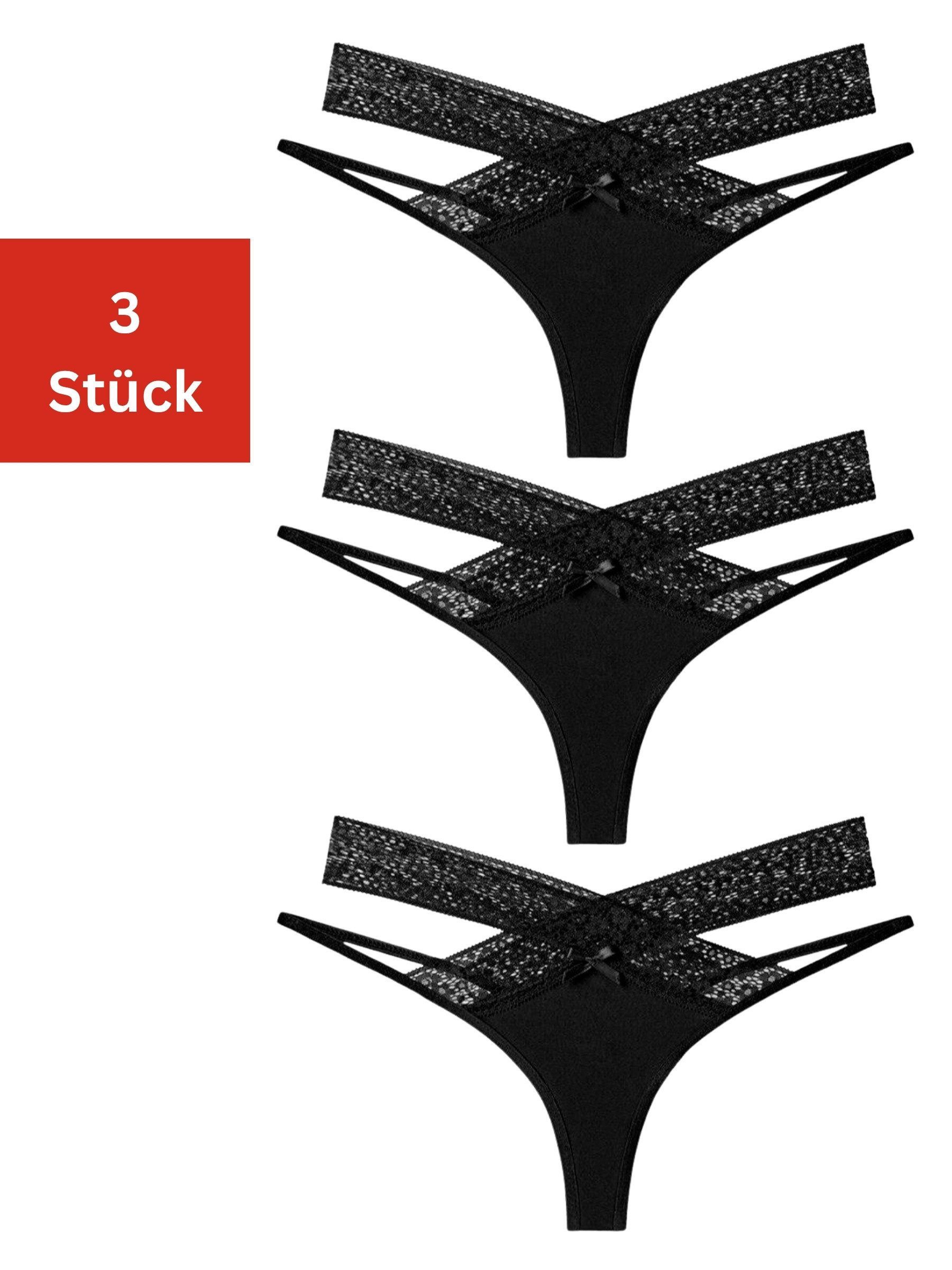 Dieses 3er-Pack Damen Tanga V-Strings kombiniert eine feminine Optik mit angenehmem Tragekomfort. Die aus zarter Spitze gefertigten Slips schmiegen sich sanft an die Haut und sorgen für ein leichtes, luftiges Tragegefühl. Das elegante Design mit stilvollen Details macht sie zur idealen Wahl für jeden Tag und besondere Anlässe. Dank der bequemen Passform bleibt die Unterwäsche auch bei längerer Tragezeit komfortabel und sitzt zuverlässig.Farbe | чёрный |