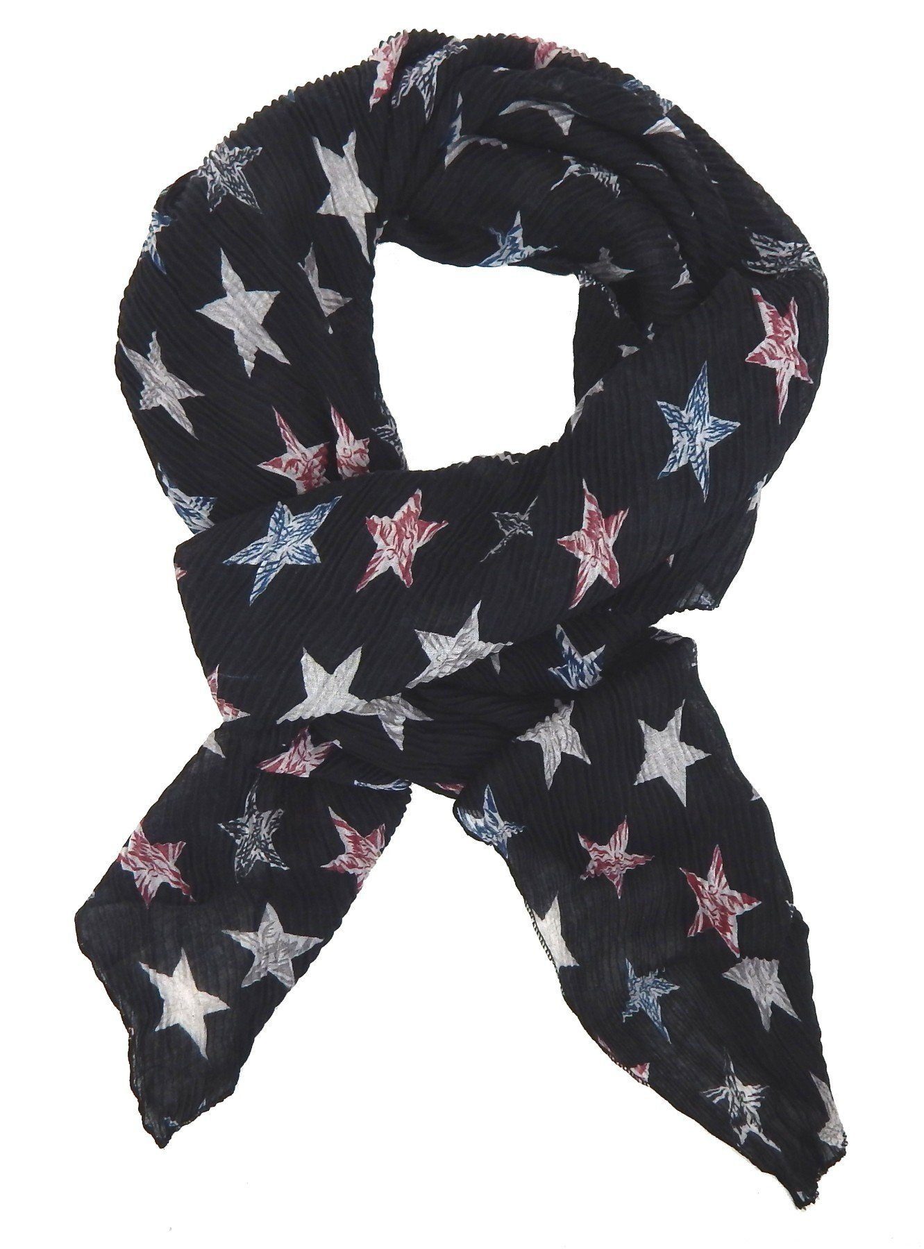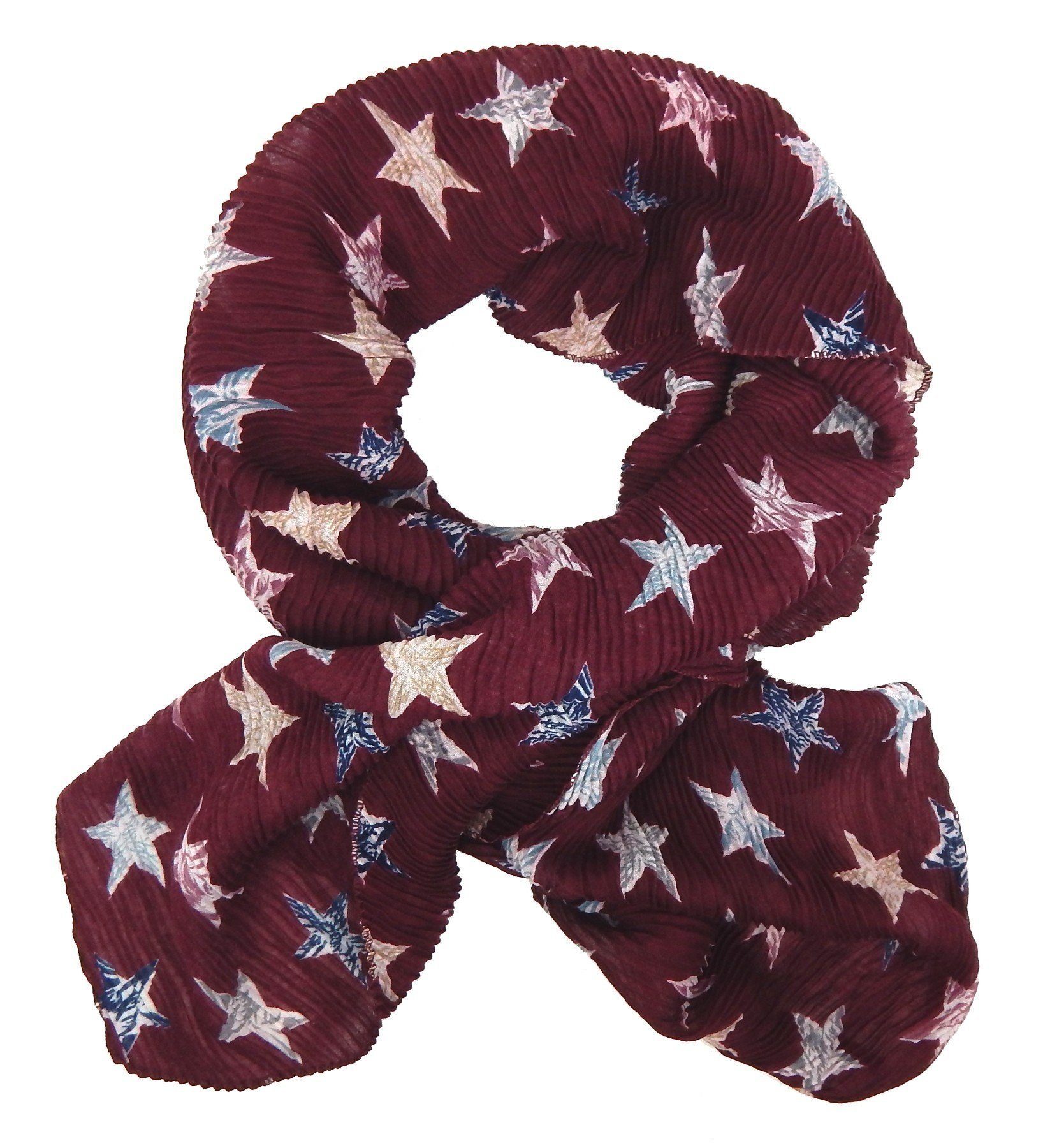 Besondere Merkmale | leichter Schal mit Sterne rot schwarz oder braun plissiert Viskose |