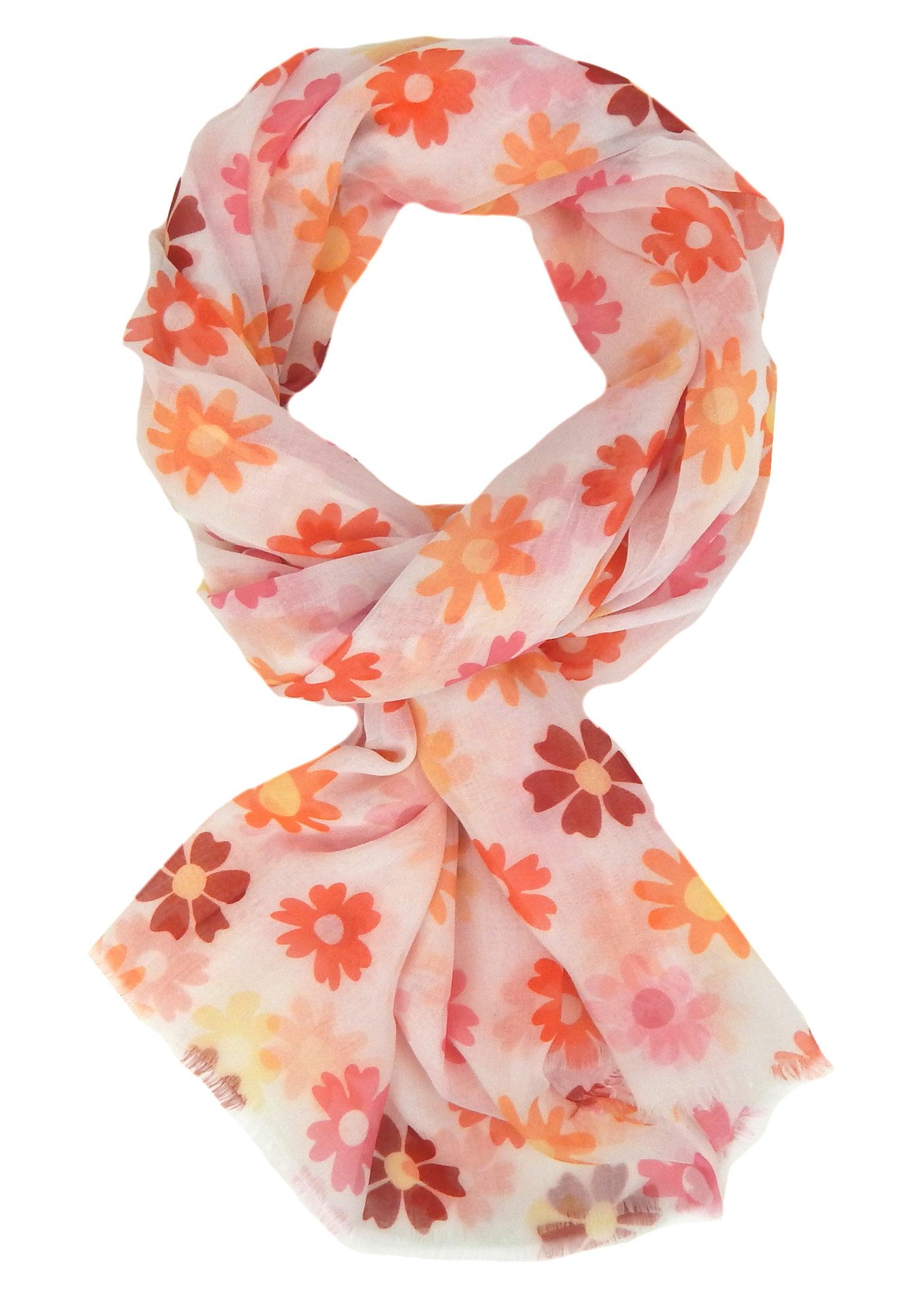 Besondere Merkmale | leichter Sommerschal weiß bunt mit Blumen 100% Viskose |
