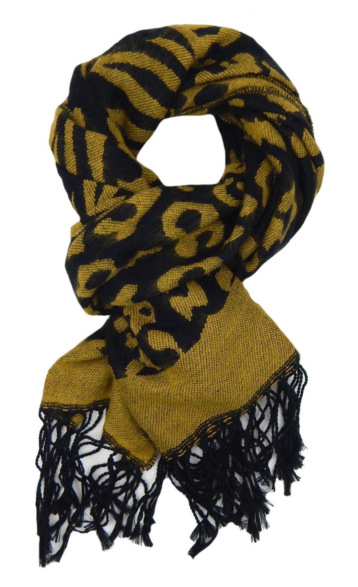 Besondere Merkmale | Leopard Schal braun schwarz oder gelb Winterschal mit Fransen |