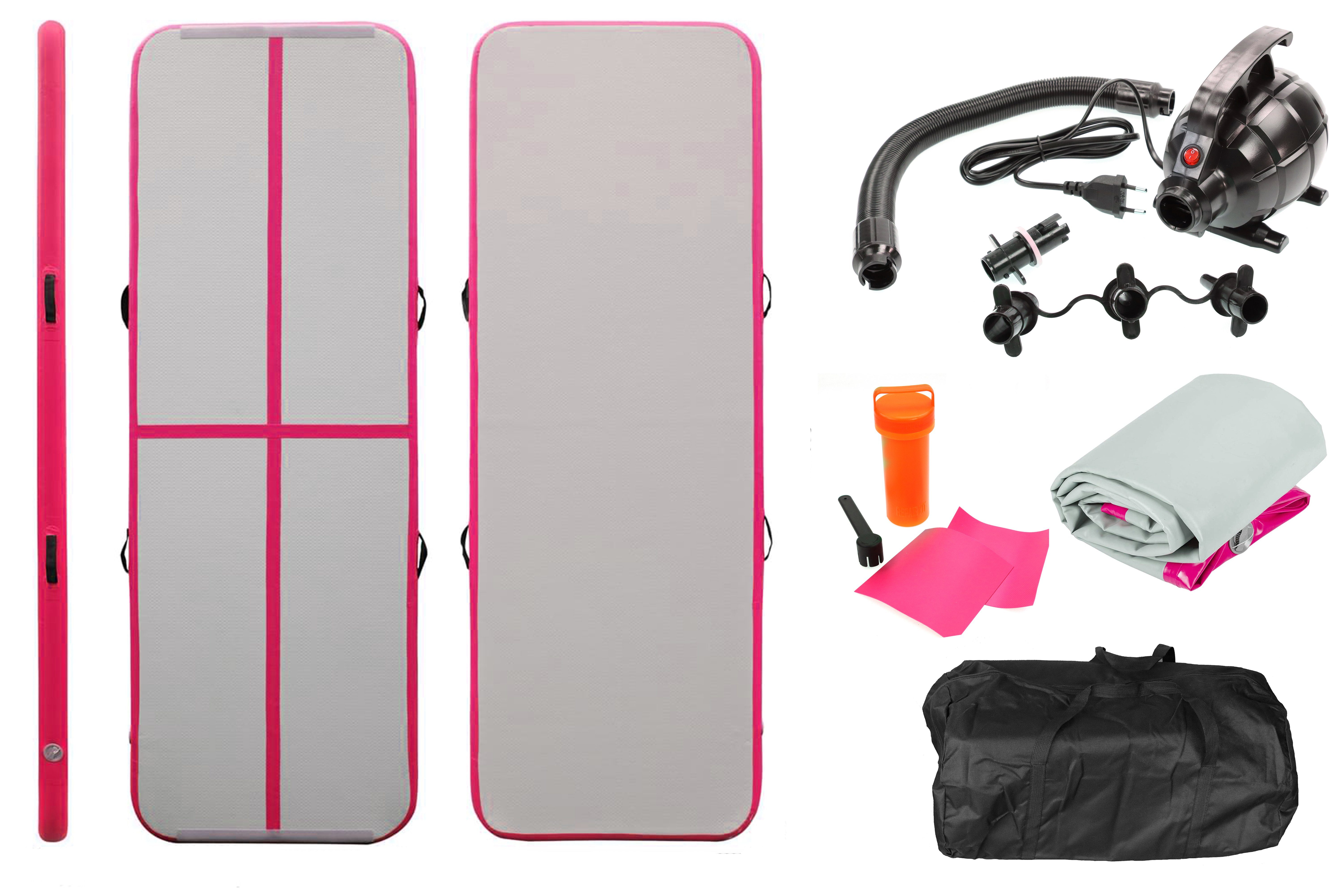 Lieferumfang | aufblasbare Airtrackmatte, elektrische Pumpe, Tragetasche und Reparaturset |