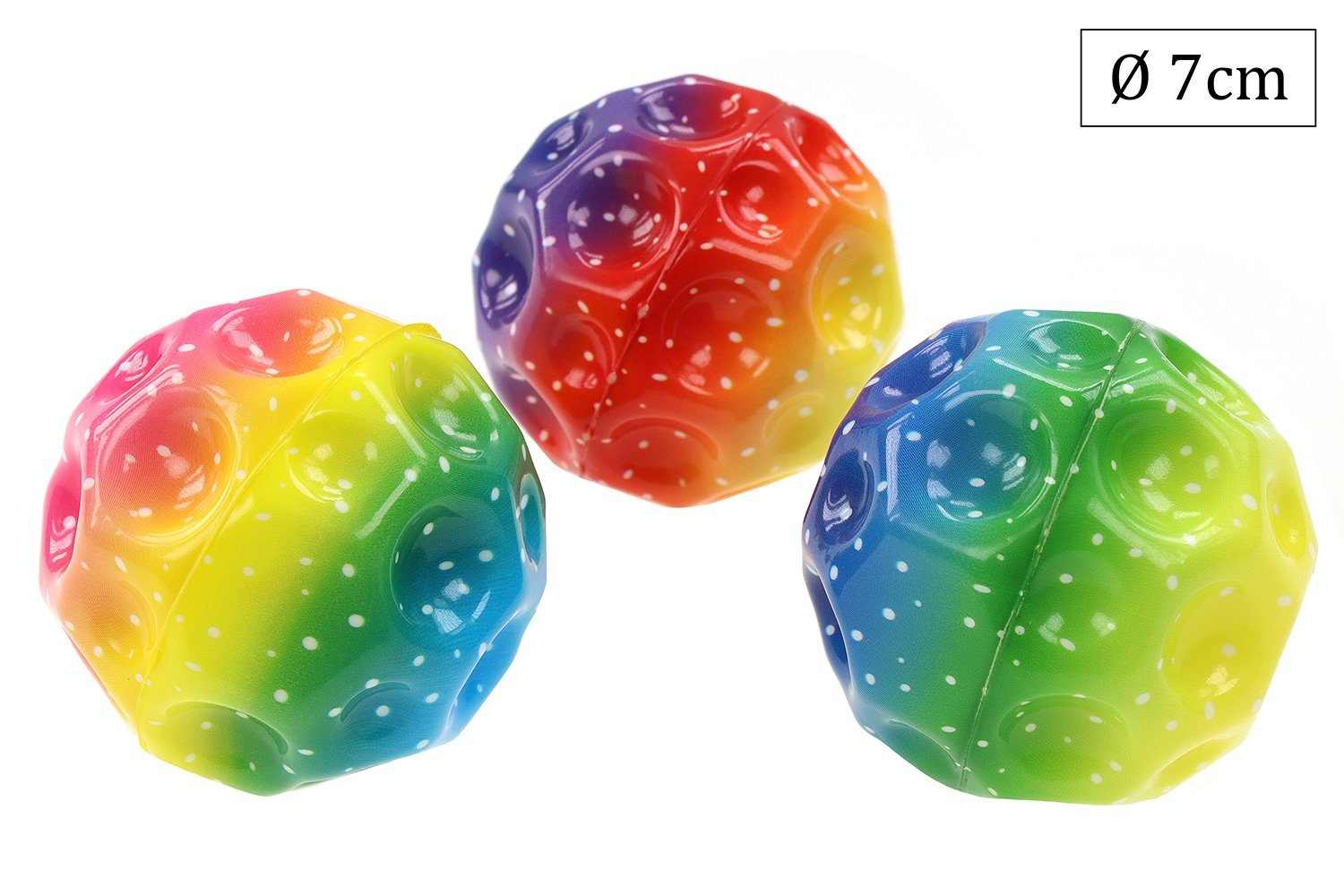 BUNTE VIELFALT - Der Ball wird in einem 3er Set in unterschiedlichen bunten, leuchtenden Farben geliefert, sodass der Ball auch nach seinem Meterweiten Hochsprung nicht aus den Augen verloren wird.