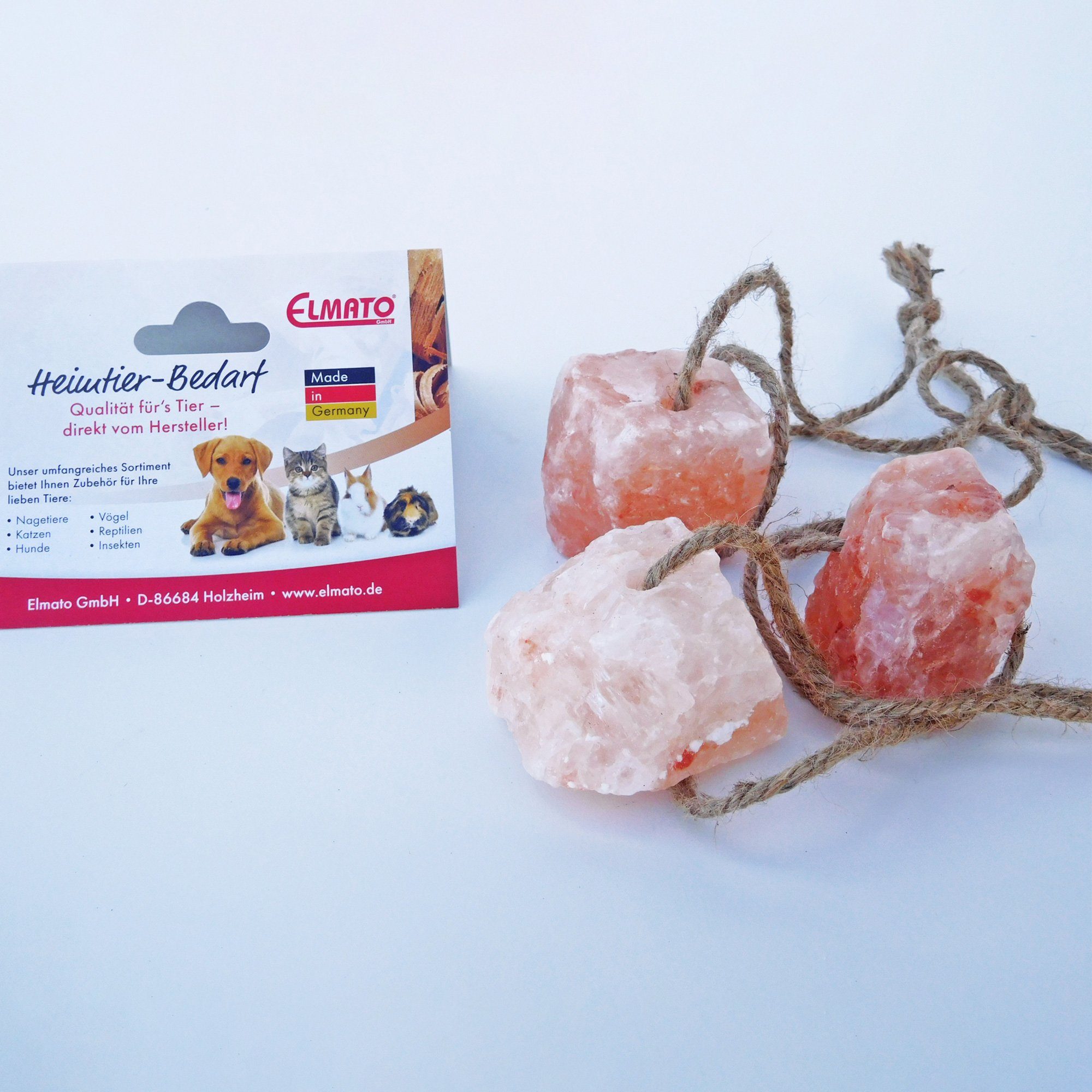 Salzkristalle Elmato 12063 Salzleckstein Kristallsalz Mineralstein mit Seil, 6 Stück