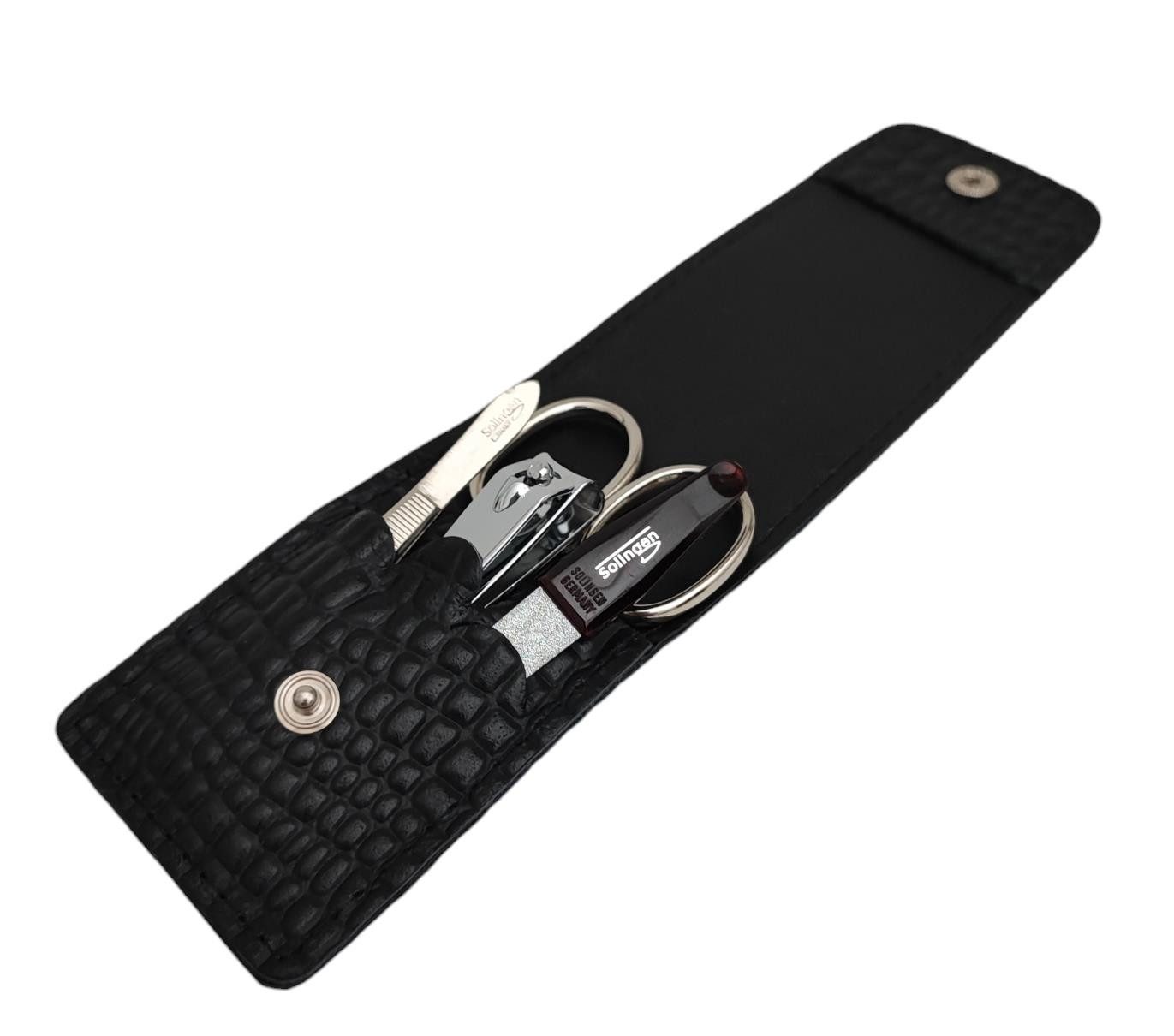 Maniküre-Etui 4-teiliges Solingen* Maniküre Set mit Leder COCCO Etui, Nagelschere
