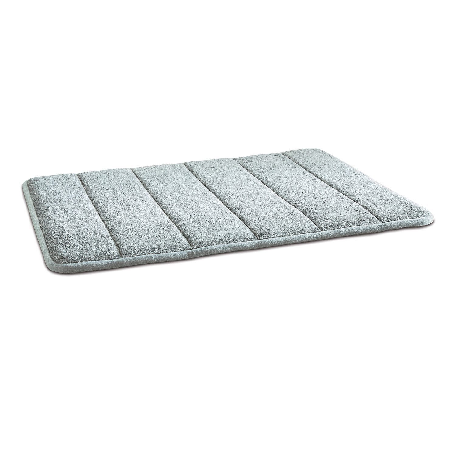 Die Badematte ist mit einer Füllung aus Visko-Mineralschaum ausgestattet und damit herrlich weich gepolstert. Beim Betreten gibt sie sanft nach und bietet Ihren Füßen ein besonders bequemes Steh- und Laufgefühl. Der hochwertige Mikrofaser-Bezug ist wunderbar flauschig und trägt zu entspannten Wohlfühlmomenten im Bad bei.