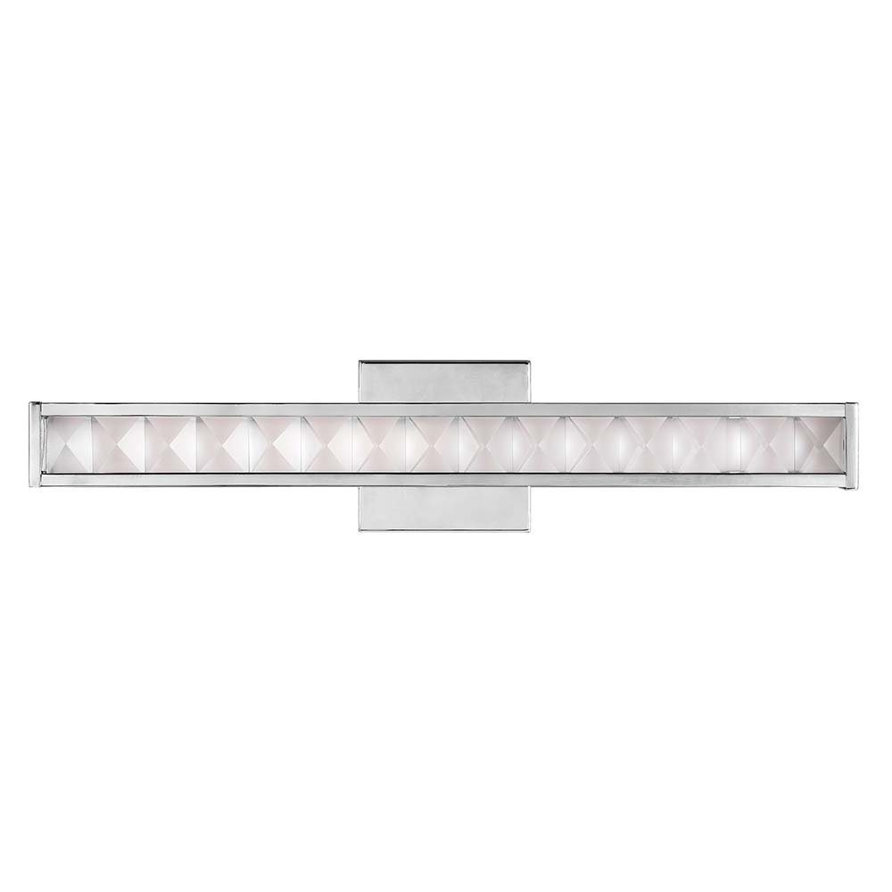 Inspiriert von edlem Schmuck verwendet die LED-Waschtischleuchte Jessie facettierte Kristalle, um eine dramatische Lichtreflexion zu ermöglichen, die durch einen weißen Diffusor dahinter gemildert wird