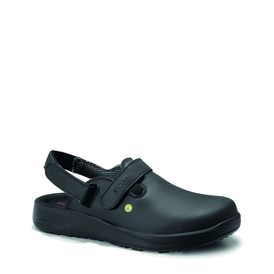Ein leichter, komfortabler Berufsclog in stilvollem Schwarz ist der MICHEL black ESD OB. Всеrgiker profitieren von der Lederfreiheit des Schuhs – das Risiko, unter den Symptomen einer Gerbstoffallergie zu leiden, ist also ausgeschlossen. Der Clog besteht aus leichter, strapazierfähiger Mikrofaser. Zur schnellen und individuellen Anpassung an den Fuß dienen ein Fersenriemen und ein praktischer Klettverschluss im Bereich des Ristes. Das atmungsaktive Textilinnenfutter des Clogs sorgt für besonderen Komfort, innen entstandene Feuchtigkeit wird aufgenommen und abgeleitet – für mehr Frische, auch an schweißtreibenden Arbeitstagen. Er ist metallfrei und damit ideal für den Einsatz in metallisch sensiblen Arbeitsbereichen geeignet. Die eigens für die ELTEN Clogs Serie entwickelte MONO-PU Sohle bewahrt Sie vor unfreiwilligen Ausrutschern auf feuchten, glitschigen Böden. Der MICHEL black ESD OB ist für Trägerinnen und Träger mit den Размер обувиn 40 bis 48 erhältlich.
